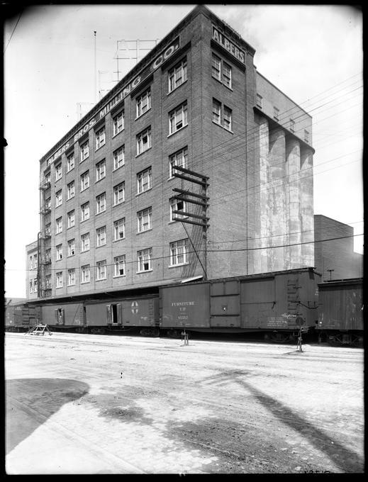 Albers Bros. Mill on NW Front Ave. (Naito Pkwy), Portland. Broadway Bridge in background..