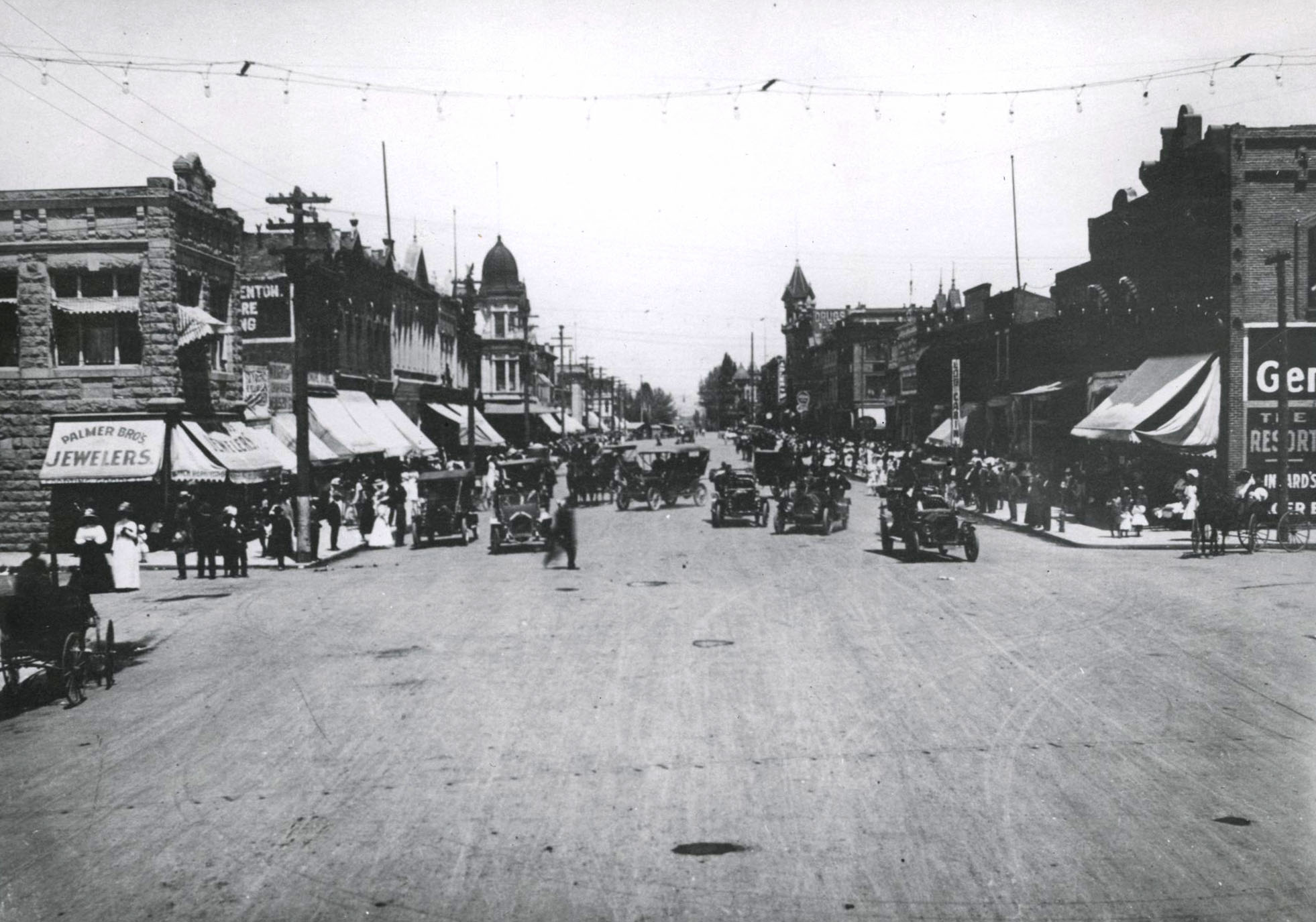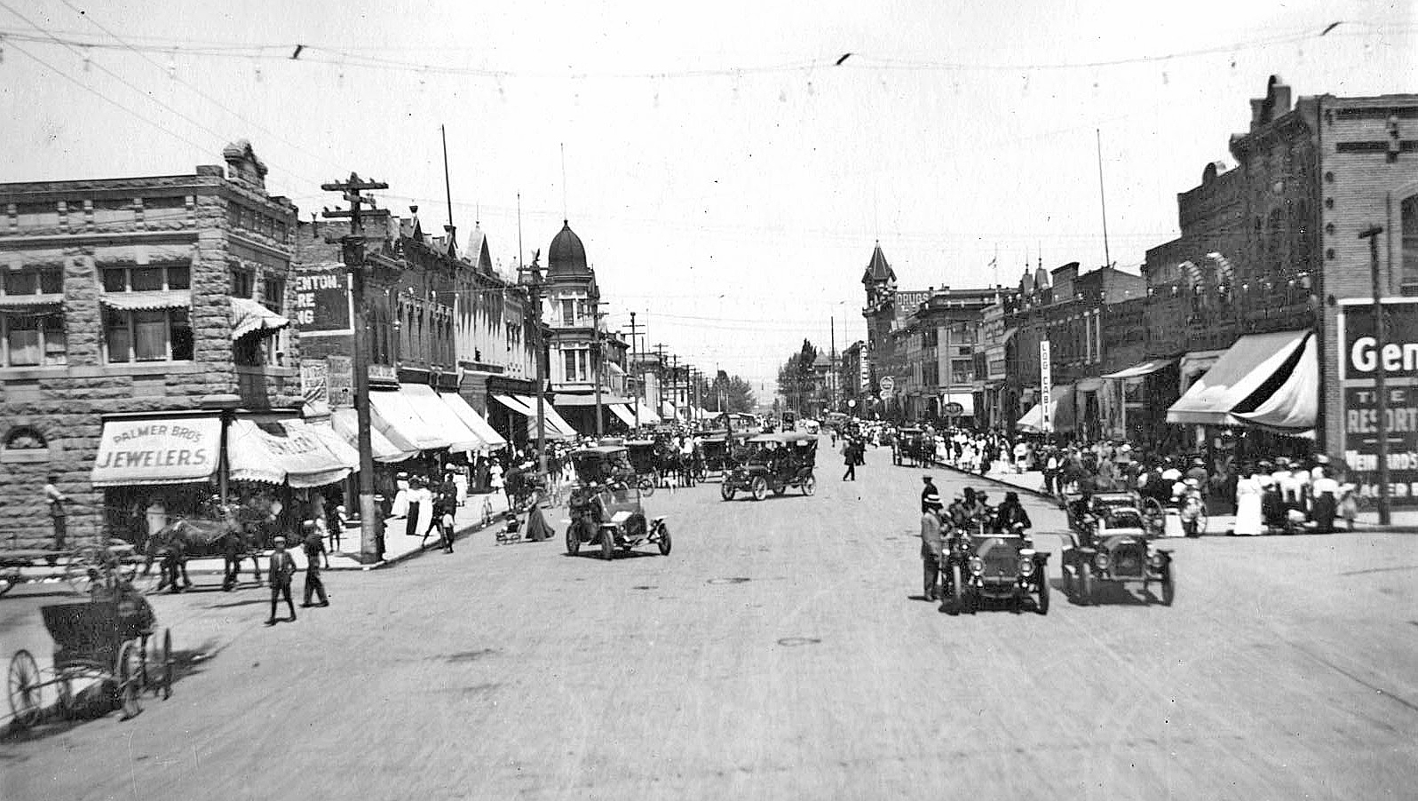 Note circus wagon in center of photo. Courtesy Baker County Library District's Historic Photo Collection