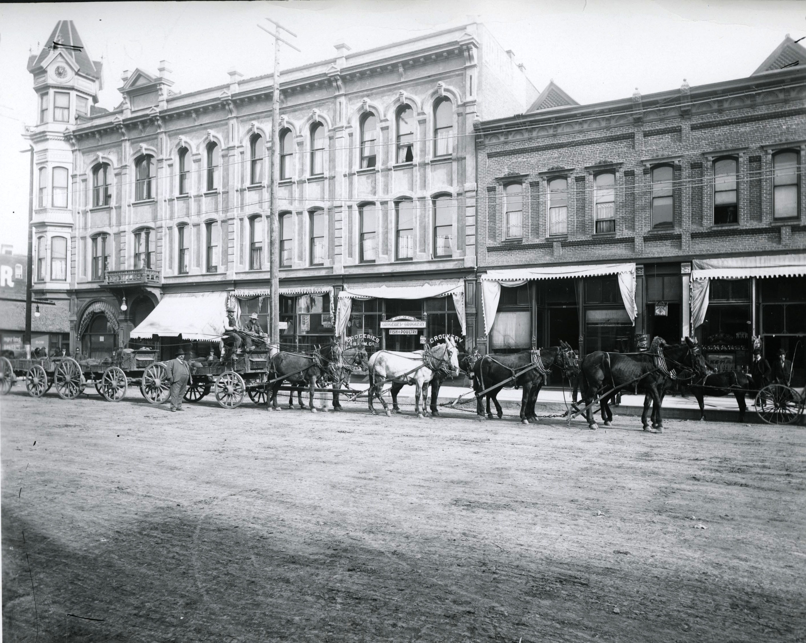 Freight wagons and teams on west side of Front (later Main) St., c.1890.