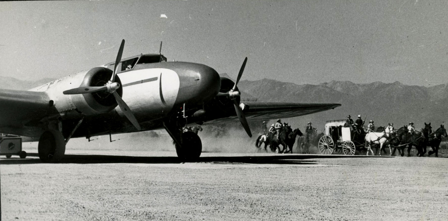 The 1862 Baker Pioneer Stagecoach at the Baker City airport dedication, 1946.