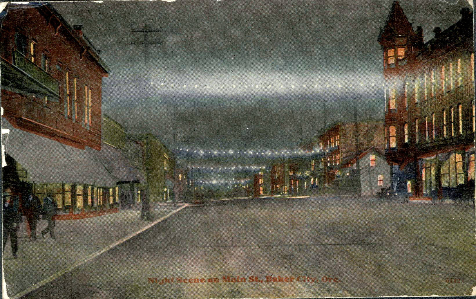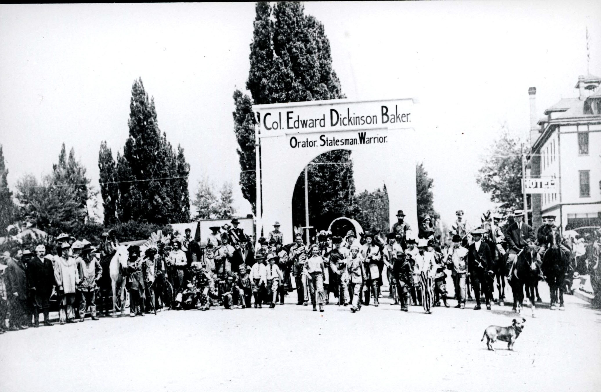 By September 1862, the Oregon legislature had carved off the eastern edge of Oregon to create Baker County. The county seat was Auburn, a mostly tent city that had mushroomed to over four thousand miners during the summer. By 1865, the gold had played out, and the town’s population had dwindled dramatically. That year, several miles to the north, attorney Royal A. Pierce platted land that would become the heart of Baker City. William F. McCray, Auburn’s first postmaster, moved his post office and variety store to the new town’s Front Street. The next year, Baker City was named the new county seat. The city was incorporated in 1874, when the legislature approved the city’s charter. Both Baker City and Baker County were named to honor Edward Dickinson Baker (1811–1861), Oregon’s first senator and the only sitting member of Congress killed in the Civil War.