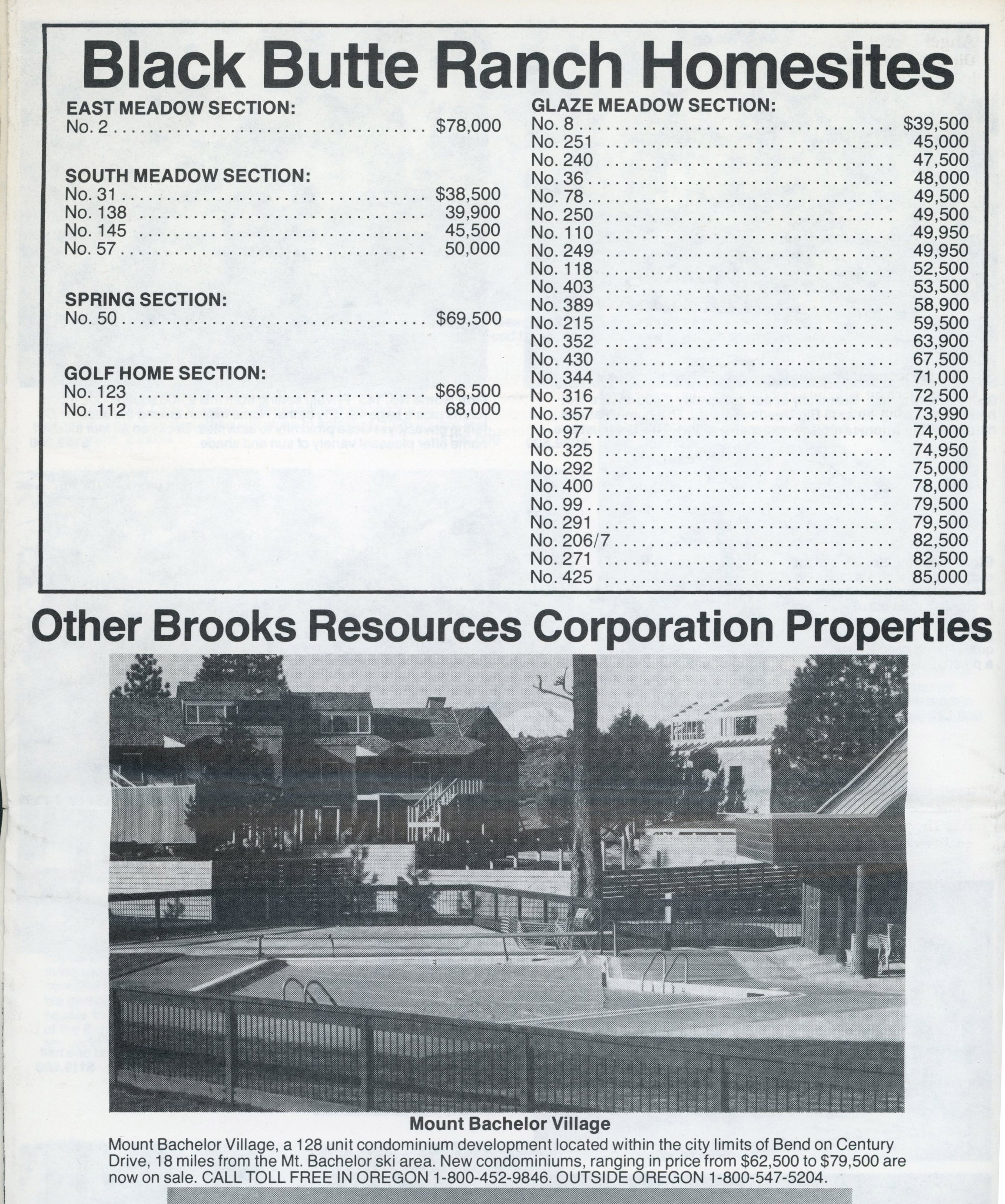Brooks Resources real estate brochure for Black Butte Ranch, 1983.