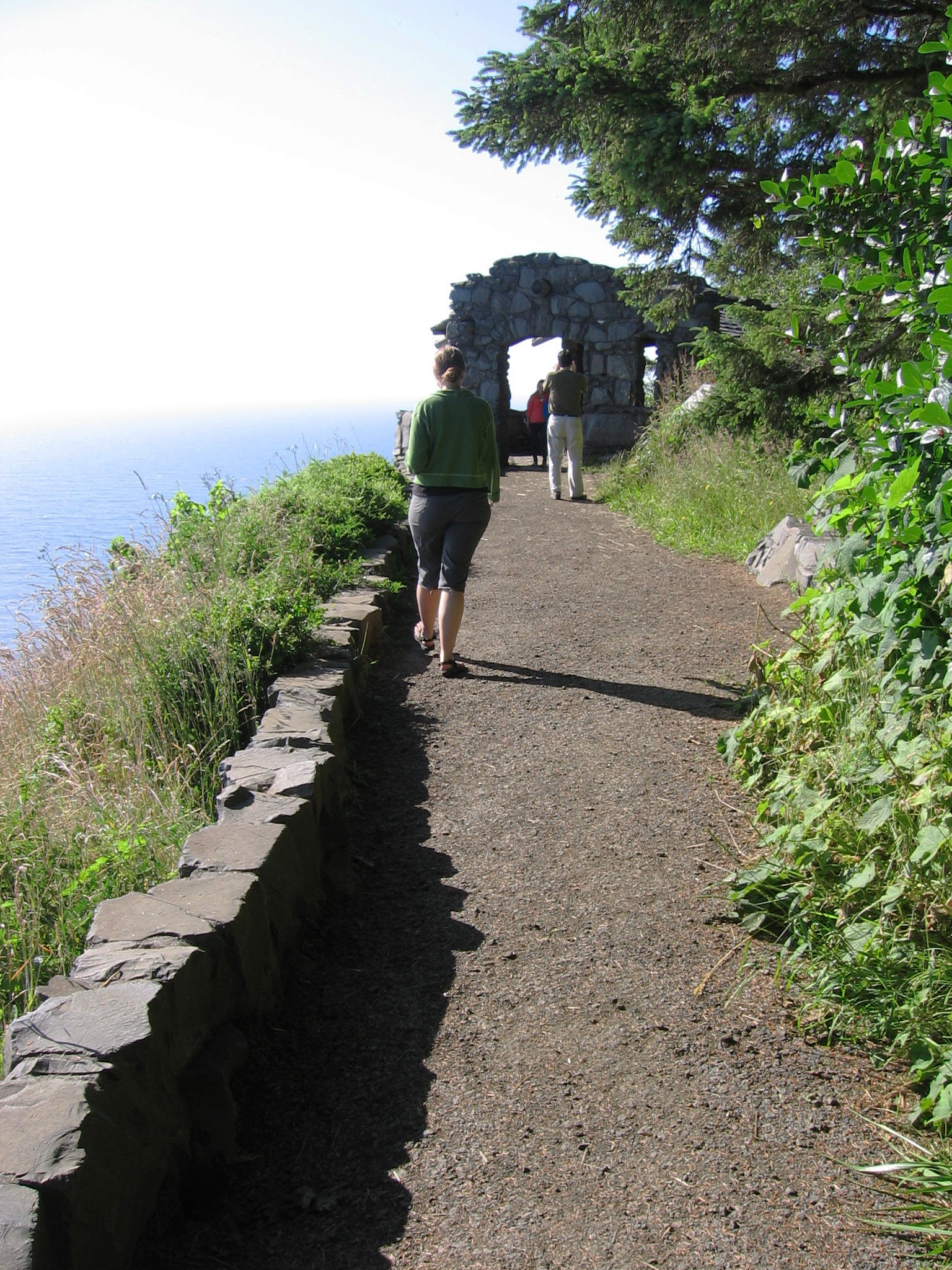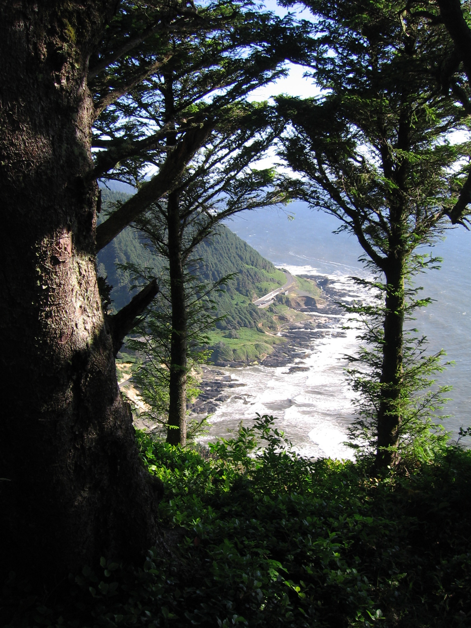 The U.S. Forest Service designated a 2,700-acre Cape Perpetua Scenic Area in the 1960s and built the Cape Perpetua Visitor Center to highlight the beauty and ecological uniqueness of the area. The Visitor Center, two miles south of Yachats, has natural history and cultural exhibits, a theater, and a bookstore, as well as trails to the ocean shore. The Scenic Area also has twenty-six miles of hiking trails through old-growth temperate rainforests, including a trail leading to the Silent Sentinel of the Siuslaw, a 600-year old Sitka Spruce. This tree was designated an Oregon Heritage Tree by the State of Oregon in 2007 to protect it and to recognize its exceptional age and size.