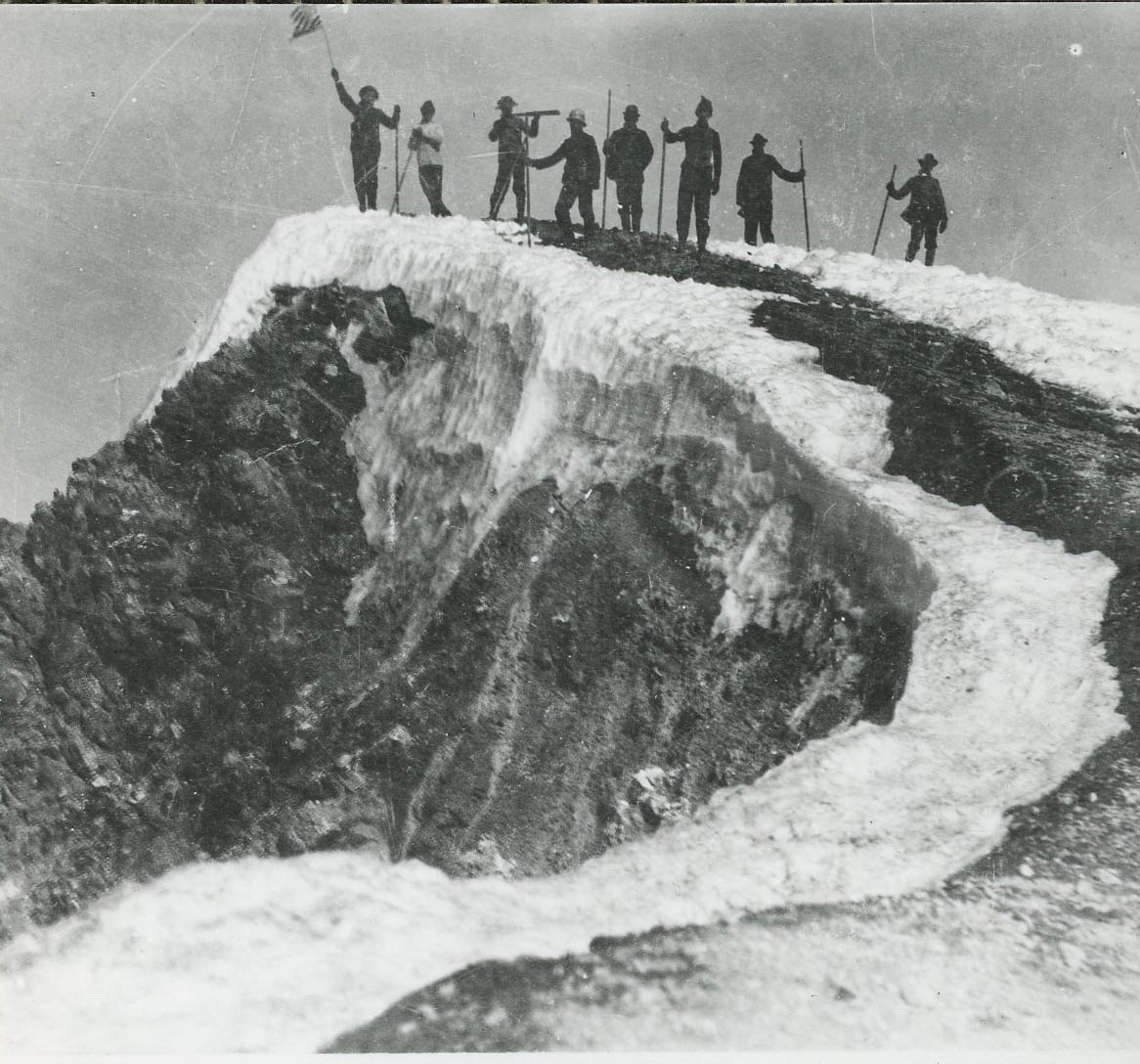 Climbers on the the summit of Mt. Hood, OrHi25468.