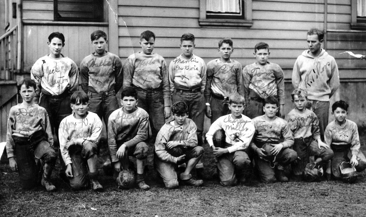 Gabel’s football team, with coach Rube Ross, c. 1933.