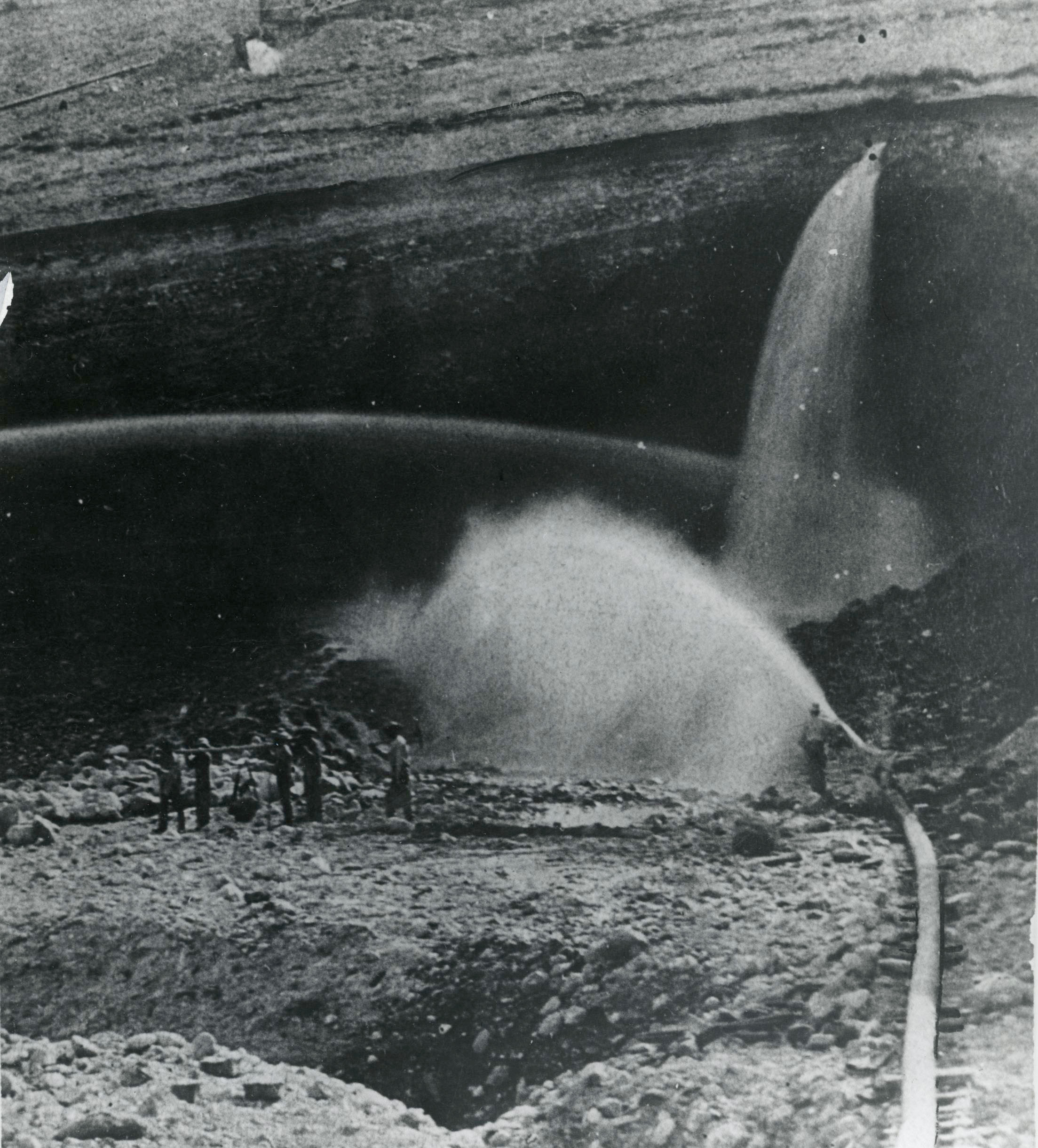 Once a water supply had been secured and equipment put in place, hydraulic mining enabled profitable working of large areas that would otherwise be considered low in value. Within a few hours, the continuous undercutting of alluvial sediments could erode tons of silt, sand, and rock, which were then pushed by other giants into channels that led to a sluice system. Tailings, the often huge amounts of waste rock that resulted from hydraulic mining, would be piled or neatly hand-stacked into what have come to be called “Chinese walls.” The organized piles enabled miners to store a larger quantity of rocks within a smaller area than random piling did and lessened the likelihood that the accumulated tailings would cause a mine to become inundated by its own water.