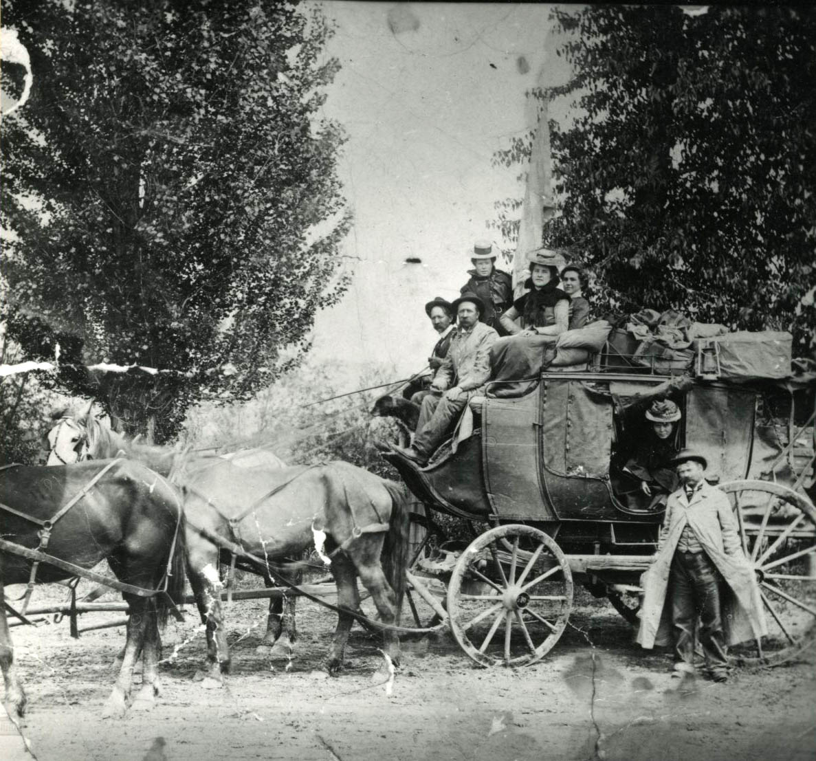 DeMoss family on the stagecoach they used for touring, c.1900.