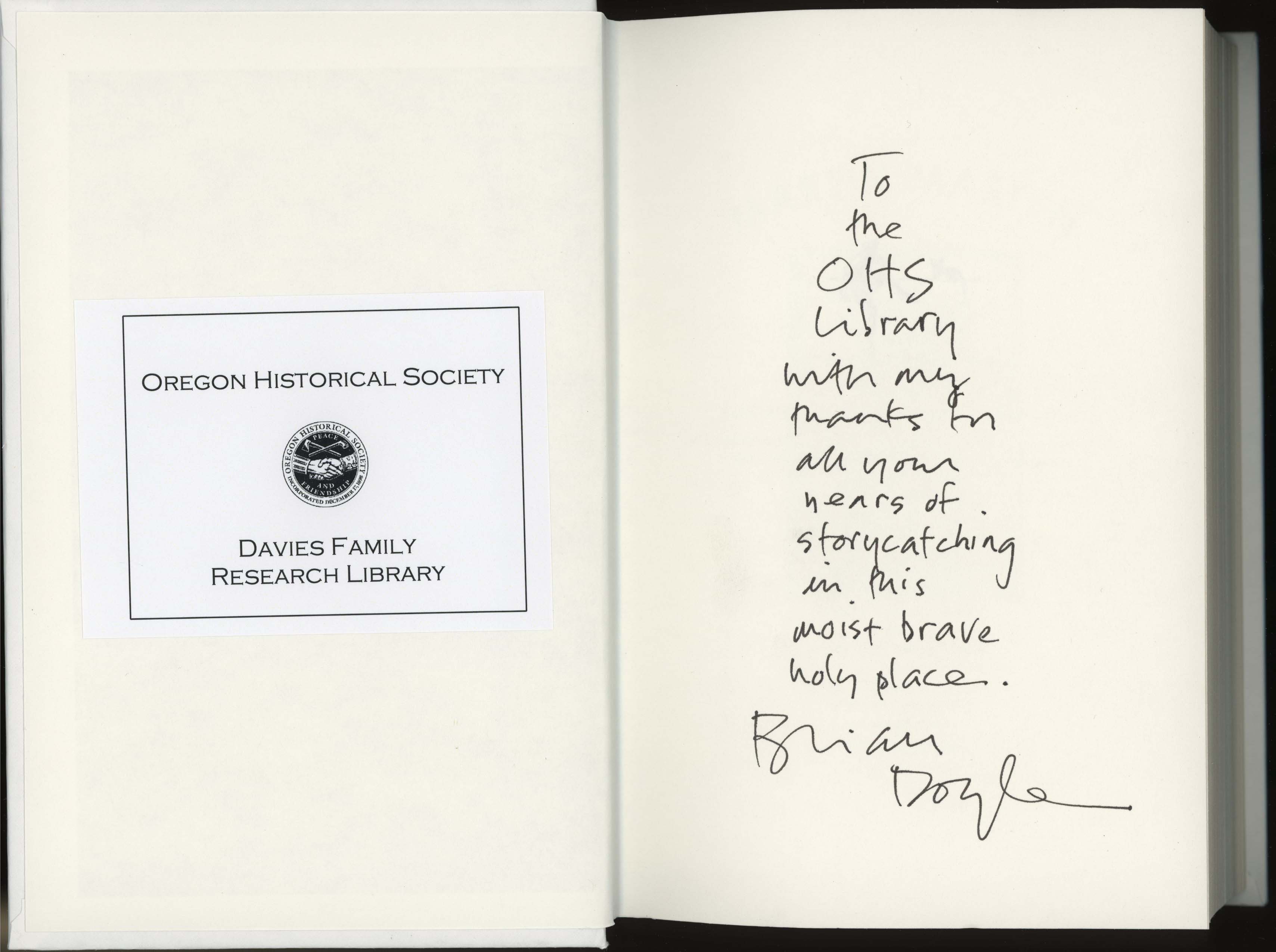 Well known in the Oregon literary community, Doyle gave readings and presentations around the state, often leading the audience in a chorus of “Amazing Grace” or regaling them with the story an argument he had with a Buddhist monk about whether soccer or basketball was the better sport. The monk was the Dalai Lama. Doyle’s writing garnered him the Catholic Book Award, three Pushcart Prizes, and an honorary doctorate from the University of Portland, yet he described himself modestly, attributing his interest in writing to his parents.