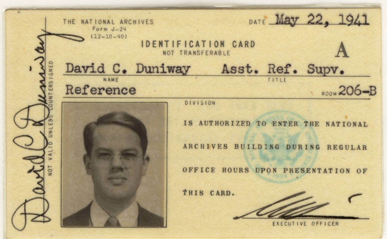 Duniway began his career at the National Archives in Washington, D.C., in 1937. While working as a field supervisor in San Francisco, he was recruited to the newly created post of State Archivist at the Oregon State Library in 1946. With one assistant and a budget of $15,000, he began the daunting task of collecting and organizing the records of the State of Oregon, going back to the beginning of statehood. Some records had been lost over the years because of careless handling, and others had been destroyed in the 1935 Capitol fire. While some records were held by the State Library, others were being kept by individual agencies and the Legislative Assembly. All had to be secured and moved to the new State Archives, located in the basement of the State Library building in Salem.