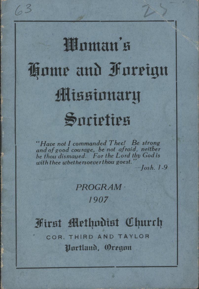 Women's Home and Foreign Missionary Societies pamphlet, 1907, cover.