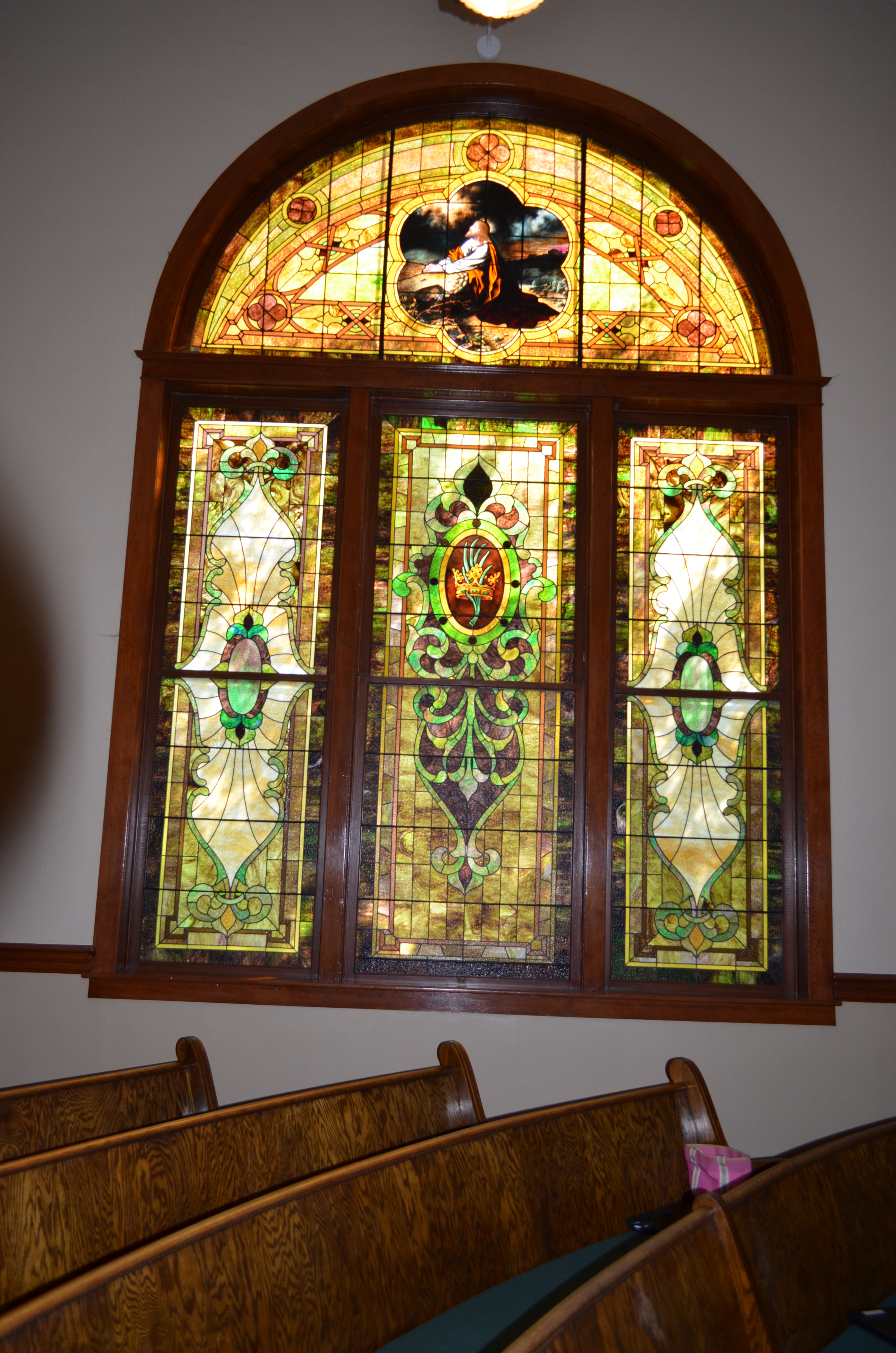 A project to restore the church’s historic windows was led by Linda Rae Barker Monroe, who was chair of the board of trustees from 2009 to 2013. Between 2010 and 2014, Tim and Dal Yockey of the Canterbury Stained Glass Company of Ashland replaced individual pieces of cracked glass and strengthened each window by adding new lead and solder.