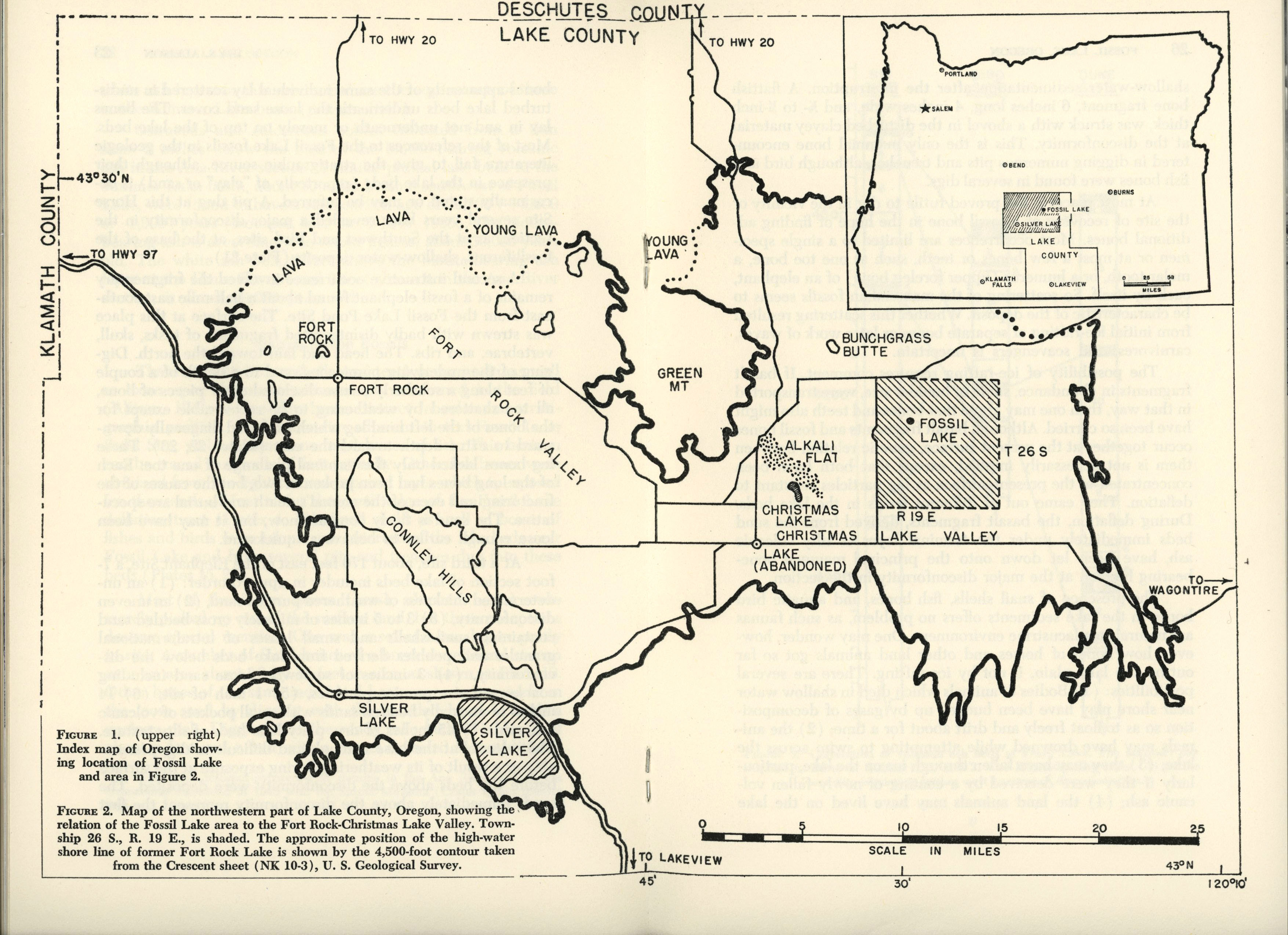 The map from "Fossil Lake, Oregon, Its Geology and Fossil Faunas," by Ira S. Allison, OSU, 1966.