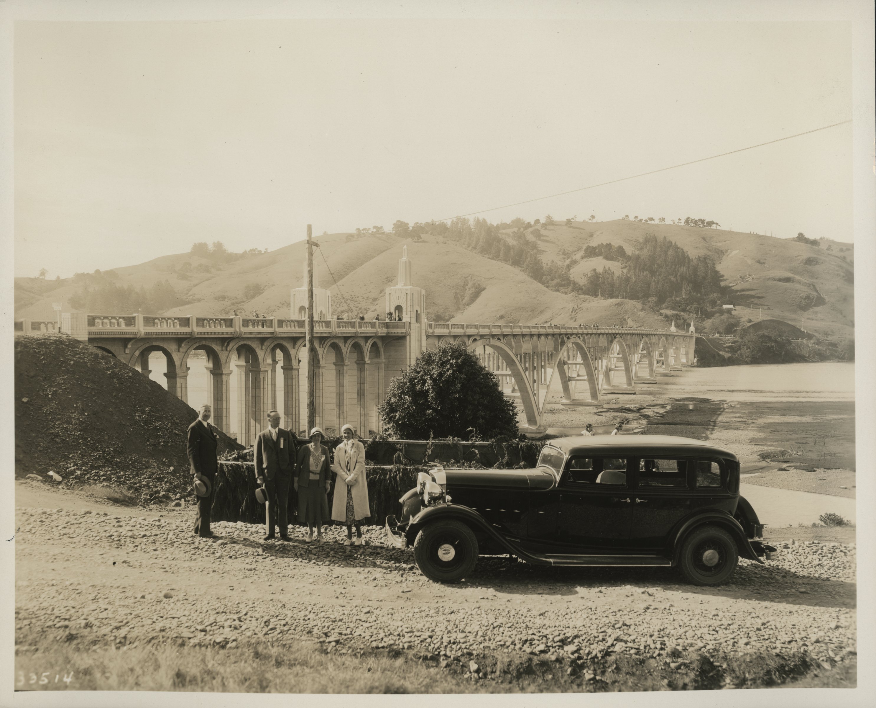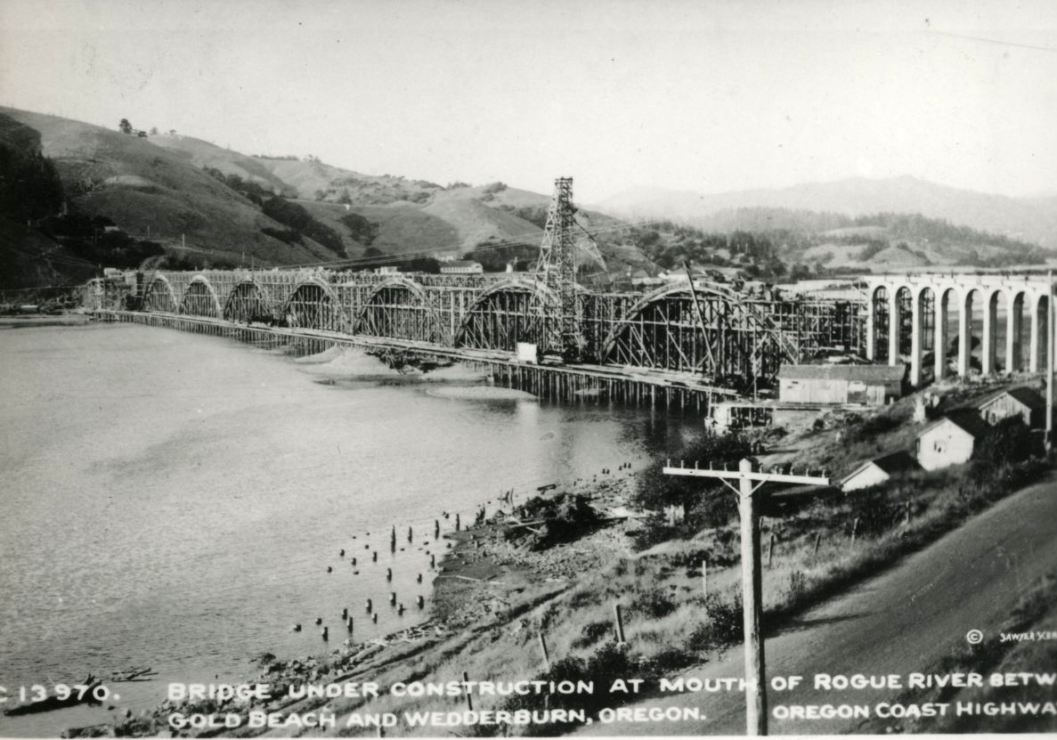 Construction of the Rogue River Bridge (Patterson Memorial), 1930.