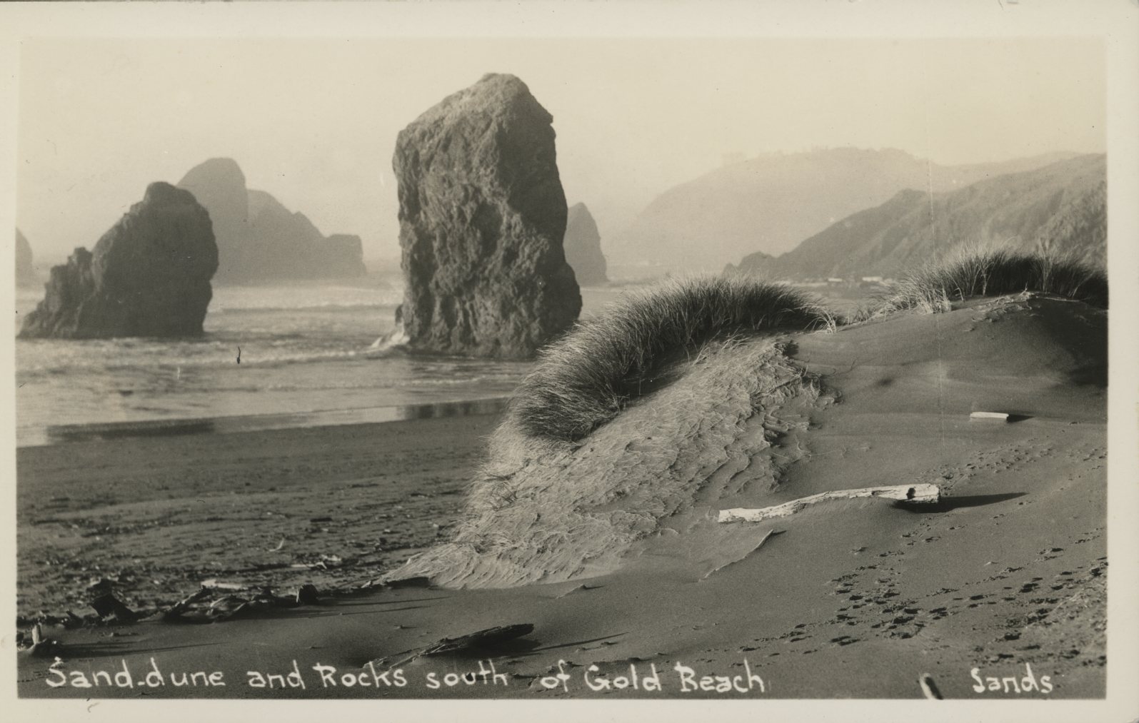 Sand dunes and rocks near Gold Beach.