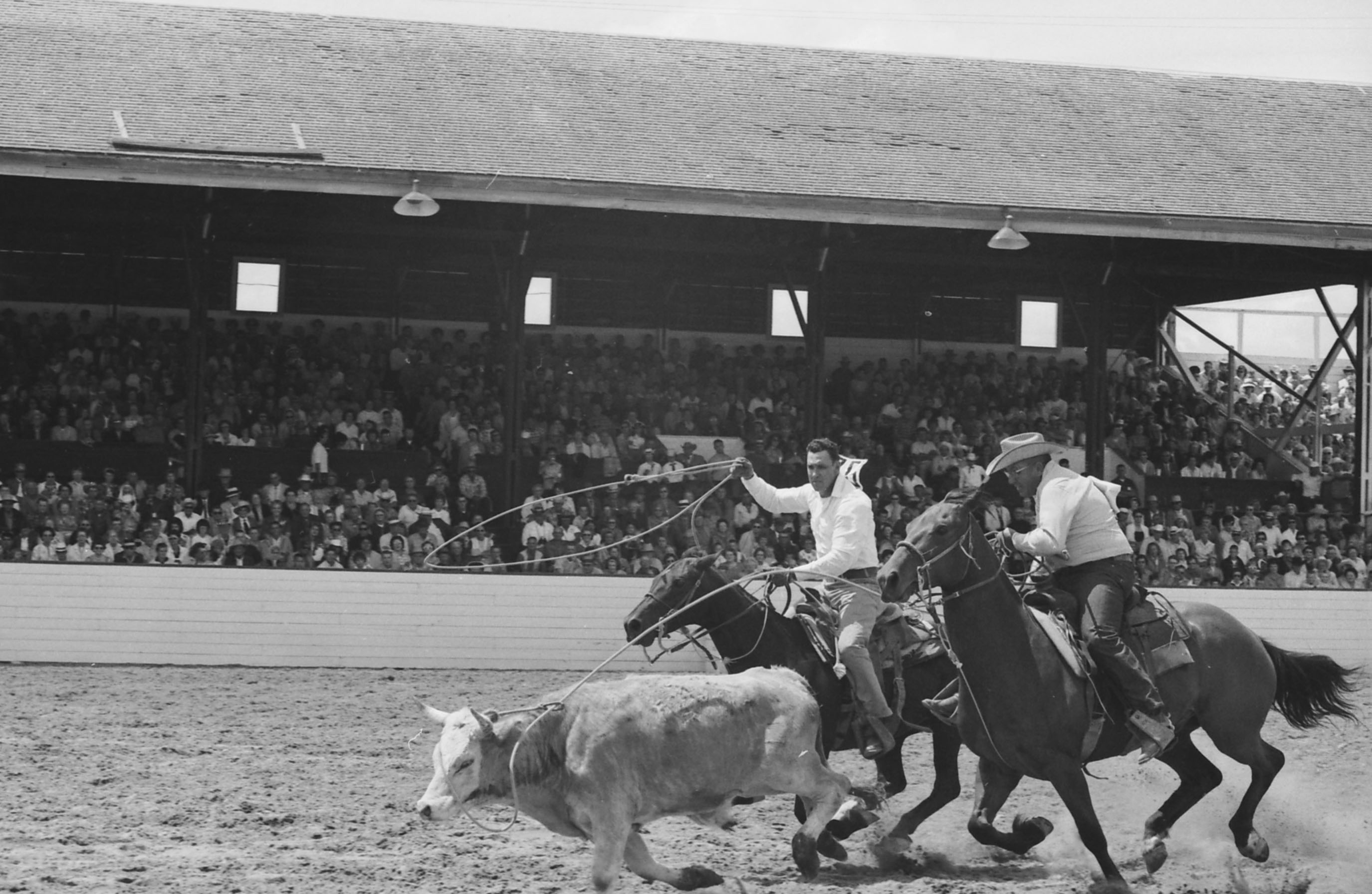 Basil Brown & Bill Steppe team roping, Klamath Falls, OR, 1963..