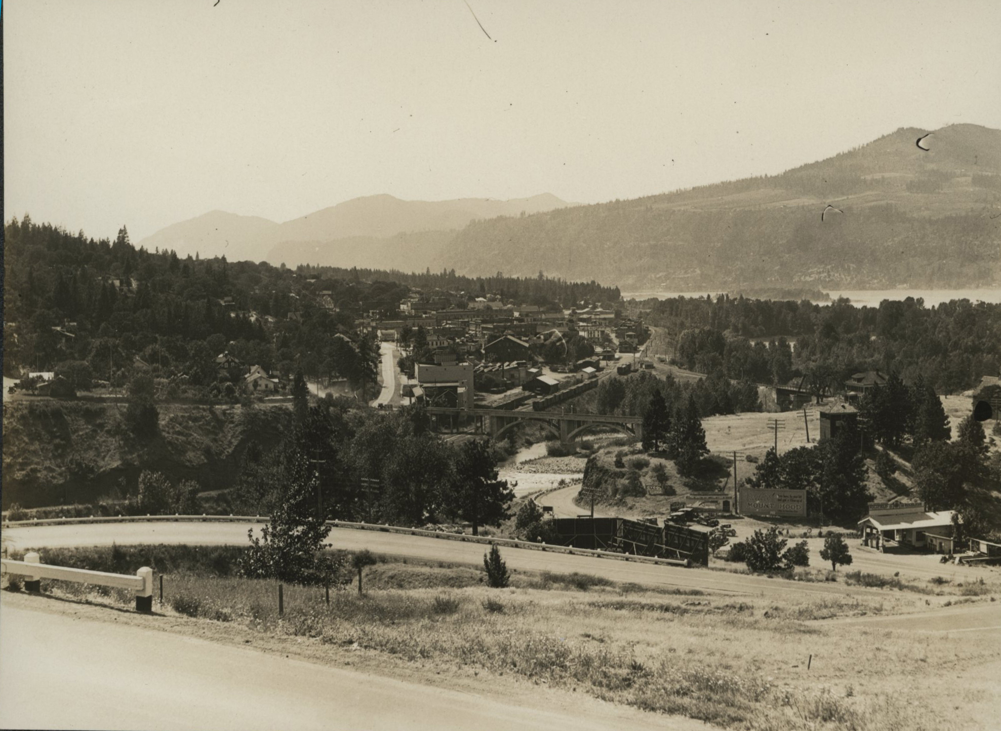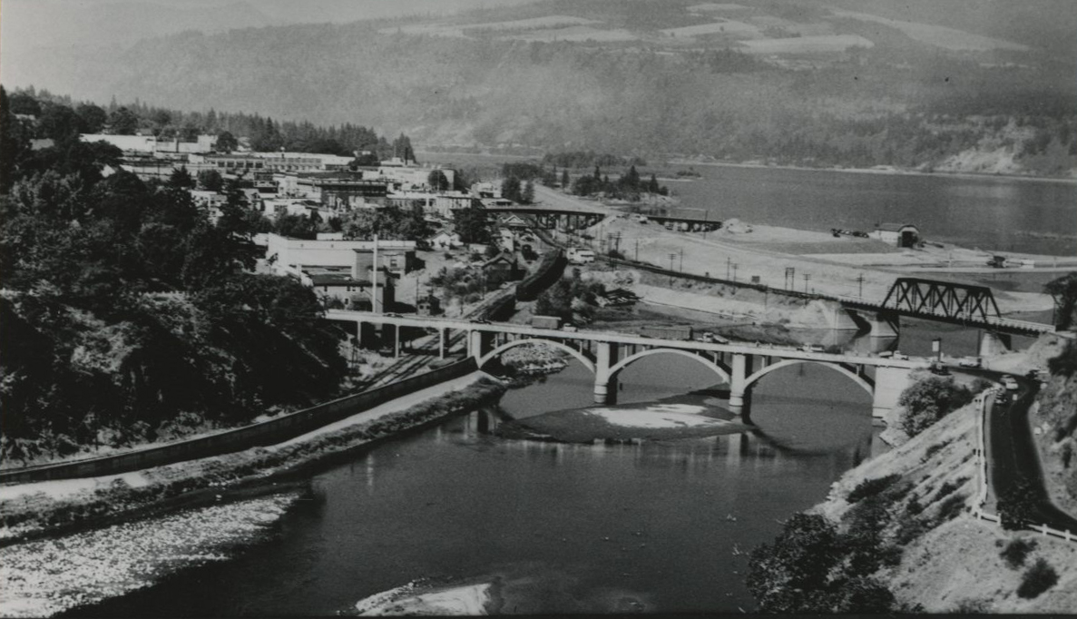 Hood River found a place on William Clark’s map as Labeasche River, after expedition member François Labiche, but the name did not stick and the stream came to be known as Dog River. Nathaniel Coe claimed land near the mouth of Dog River in 1854, building a house and planting the first orchard; his wife Mary rechristened the stream Hood River. A small but prosperous settlement developed, formally incorporating in 1895. Logging and agriculture dominated the local economy, as loggers harvested the trees and orchardists employed Japanese immigrants to remove the stumps and clear land.