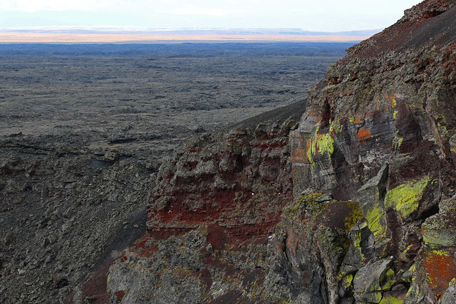 Israel C. Russell first described the geology of the area in 1903 and applied the name Jordan Craters to four approximately north-south aligned “recently extinct volcanoes.” Over time, the name has narrowed to refer only to the northernmost and youngest of the volcanoes and its products. In this context, Jordan Craters encompasses an area of about 26 square miles dominated by a lava field that is an estimated 0.2-0.4 cubic miles in volume. The basalt lava field is sourced from Coffeepot Crater, nestled in the northwestern corner of the field (labeled Crater No. 4 in Russell’s report and Morcom Crater, after a nearby ranch, in early descriptions).