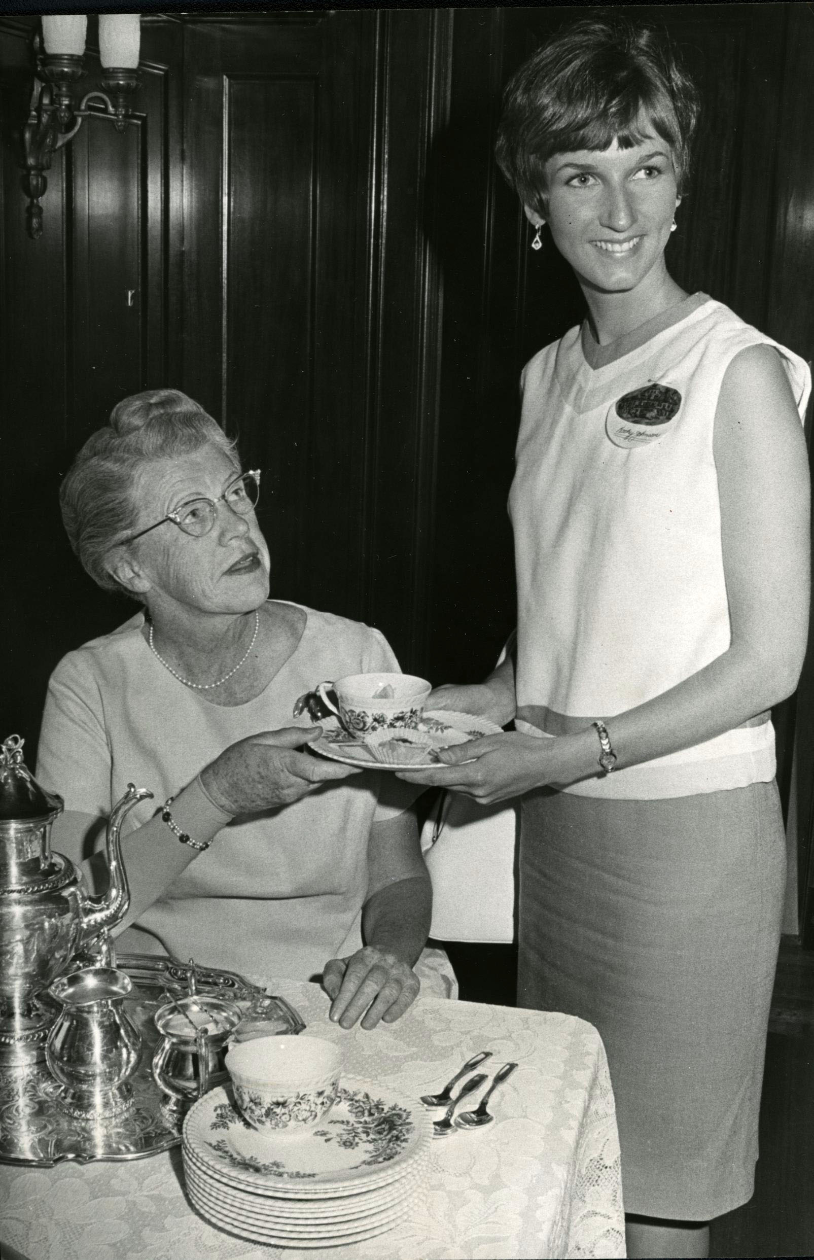 Lauretta Keller (l), with Kathy Johnson, at the Pittock Mansion, 1967.