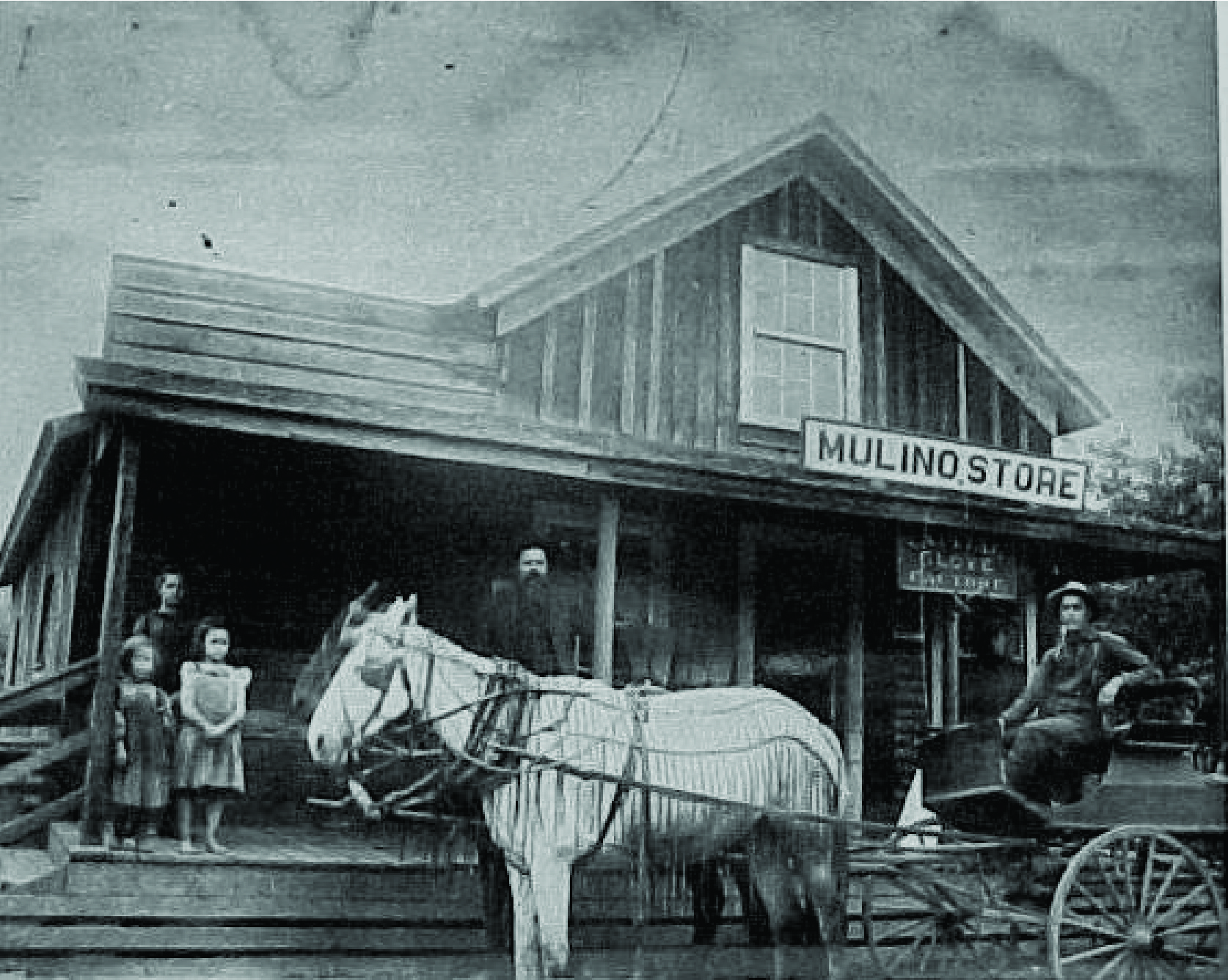 In 1882, Charles Howard, Richard’s son, decided to open a post office. He wanted to name it Molino, which means mill in Spanish, but postal authorities would not permit it, ostensibly because the name was too similar to Molalla, a town about six miles to the south. Apparently the name Mulino was satisfactory, however, and the post office was established at the south end of town.