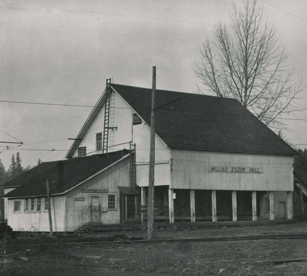 ![]()  Mulino Flour Mill; extension held post office, 1920. Courtesy Oregon Hist. Soc. Research Lib., Lot311392