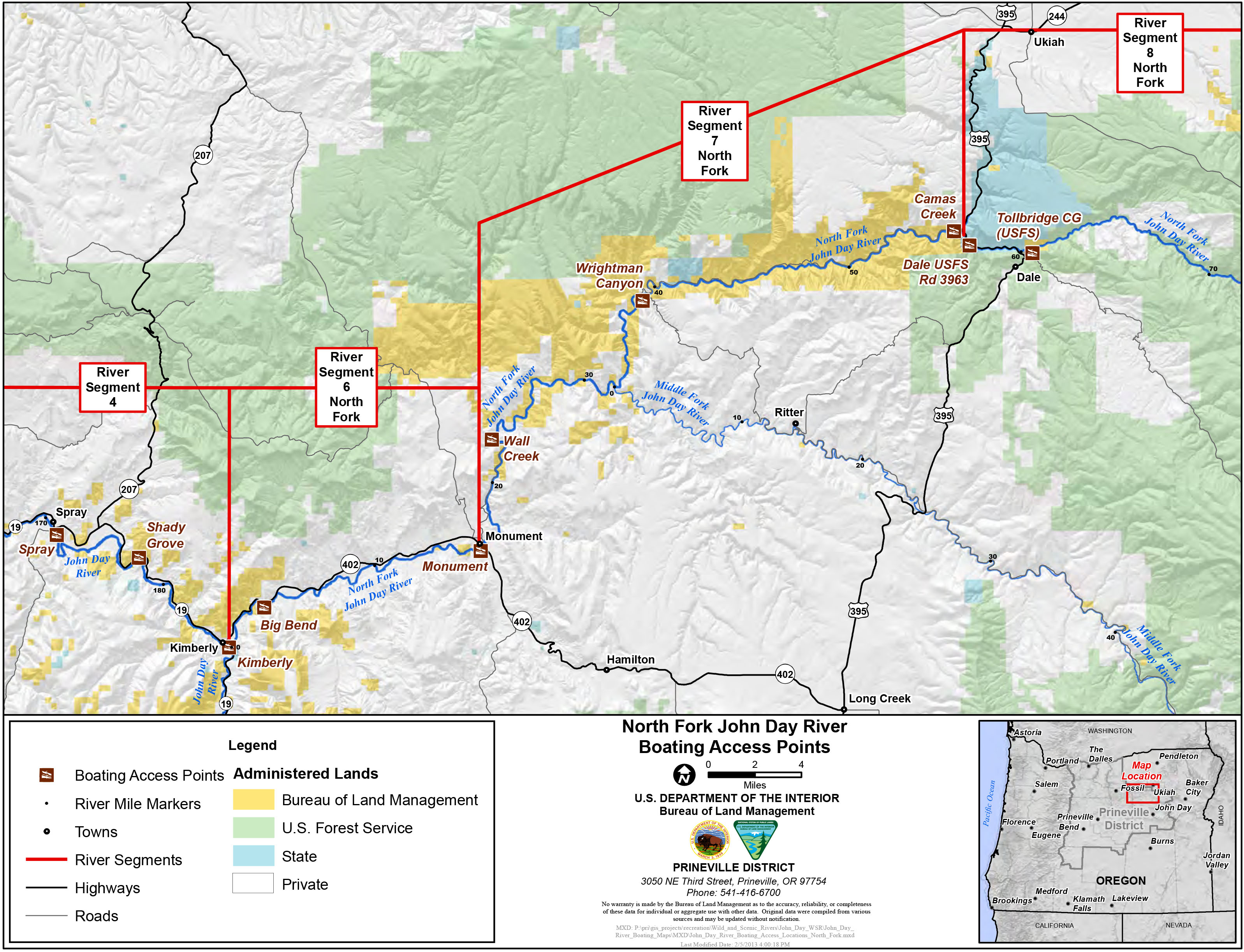 BLM access map to the North Fork John Day River.