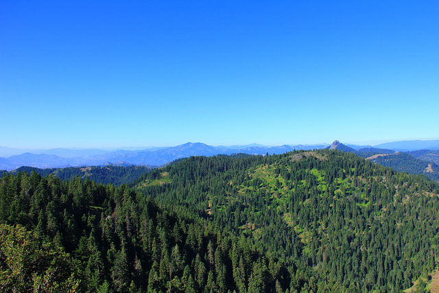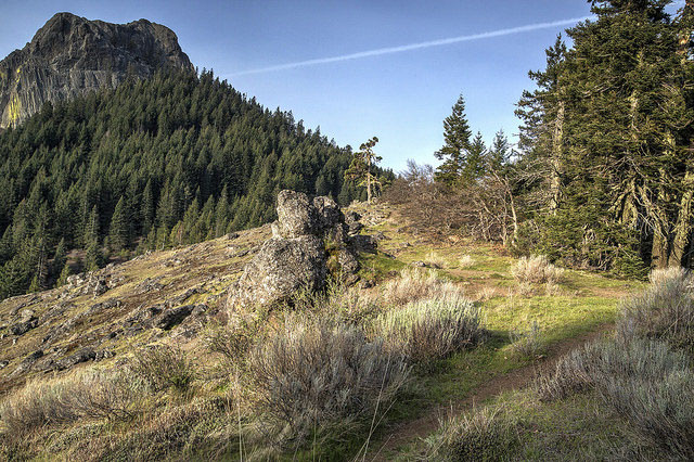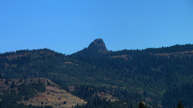 Located east of Siskiyou Pass inside the Cascade-Siskiyou National Monument, Pilot Rock is a prominent landmark in southwestern Oregon, protruding from the skyline of the Rogue-Klamath watershed divide like a hitchhiker’s thumb. The Upland Takelma people, who could see the rock rising above the horizon from their homeland on the Rogue River near the Table Rocks, knew it as Tan-ts’atseniptha (rock standing up).