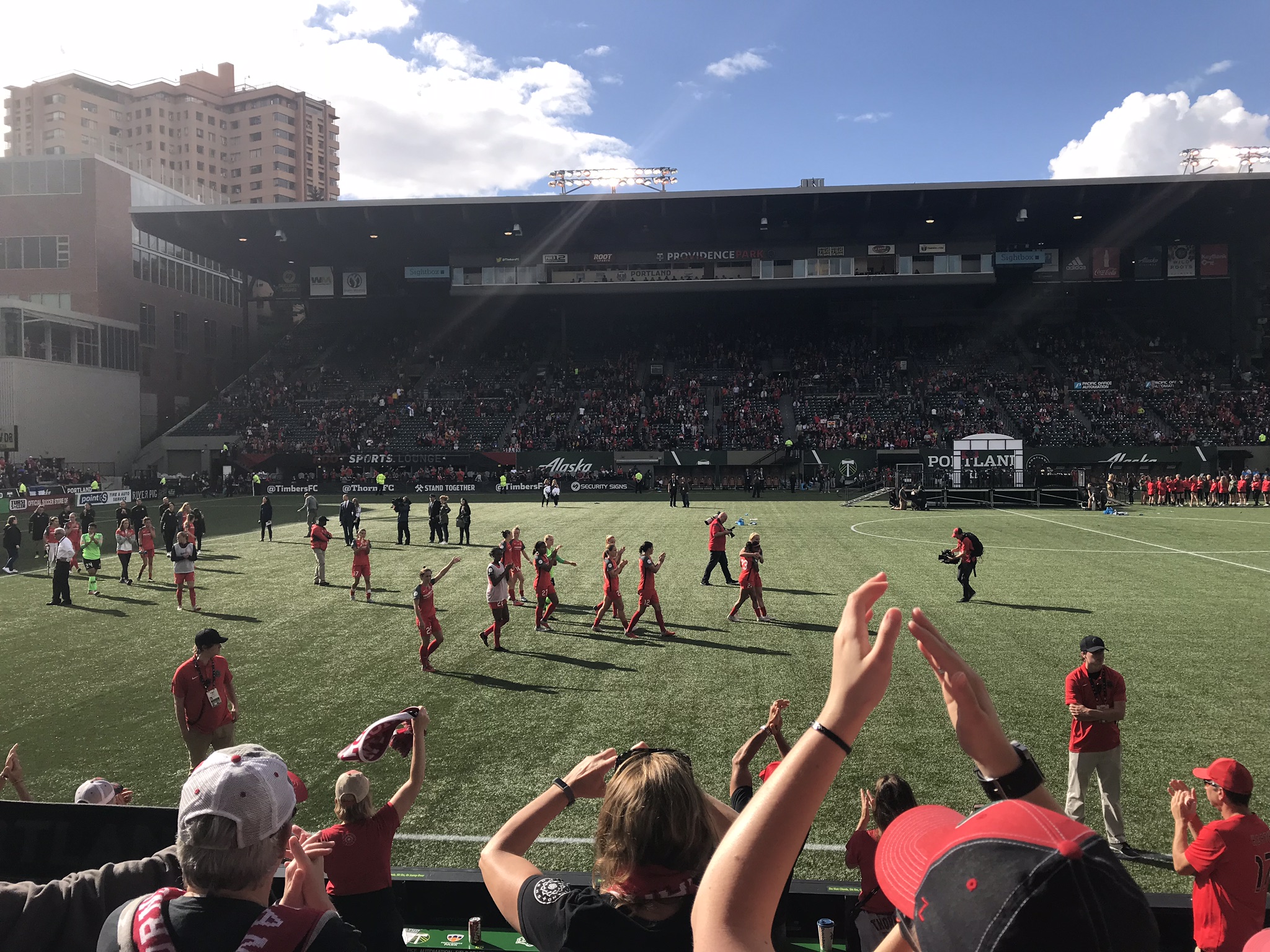 The Portland Thorns take a lap around the stadium to thank and applaud their fans after every game..