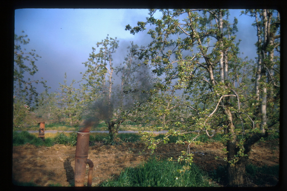 Based on information coming out of Florida, orchardists in the West began to use smudging to protect the fruit from frost. It was commonly believed that a heavy smudge—that is, smoke hanging over an orchard—would retain heat and prevent the morning sun from thawing the young fruitlets too rapidly. In those early days, anything that produced smoke (e.g., wet straw, manure, leaves) was burned—hence, the term smudging.