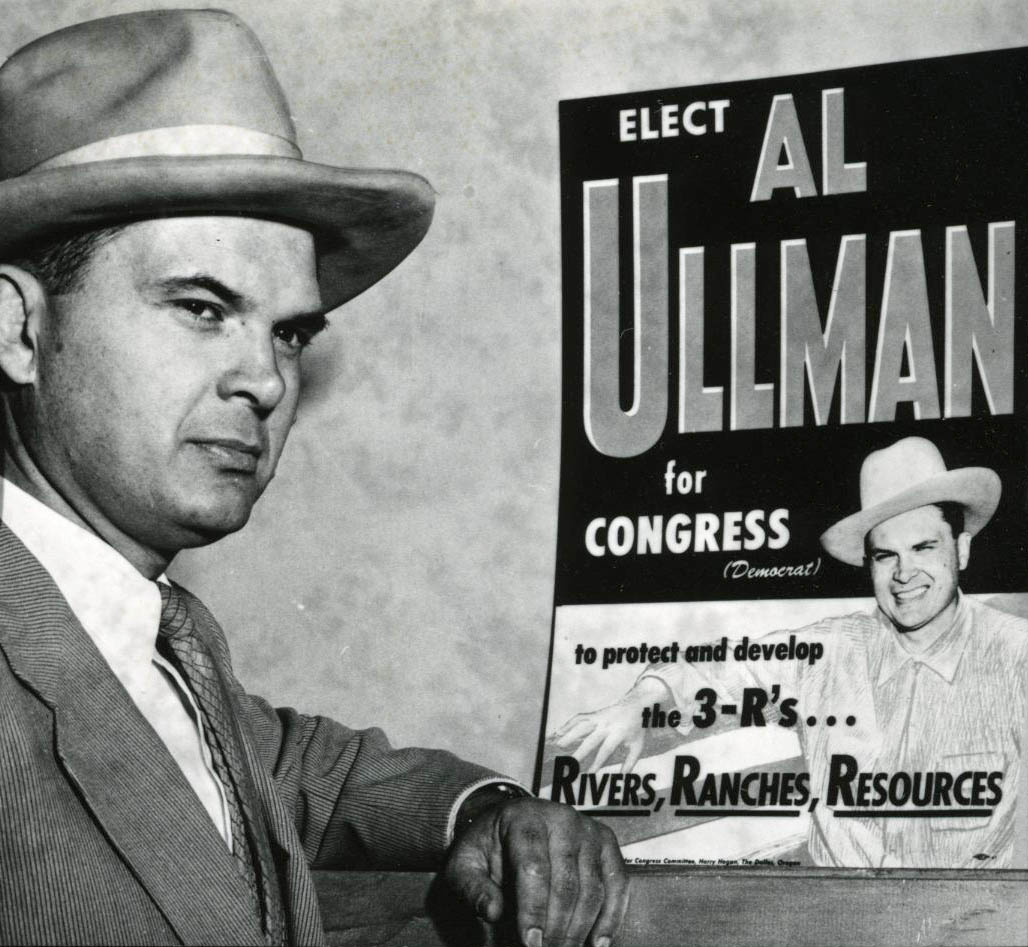 Albert Conrad "Al" Ullman, the U.S. representative from Oregon’s Second Congressional District from 1957 to 1980, was one of the state’s most effective elected officials in the post-World War II era. Initially a New Dealer in the mold of President Franklin Roosevelt, he gained a reputation as a socially liberal but fiscally conservative Democrat in a constituency made up largely of conservative eastern and central Oregonians. As a low-profile politician, Ullman was often overshadowed by the headline-grabbing activities and pronouncements of fellow politicians like Wayne Morse, Mark Hatfield, and Tom McCall.