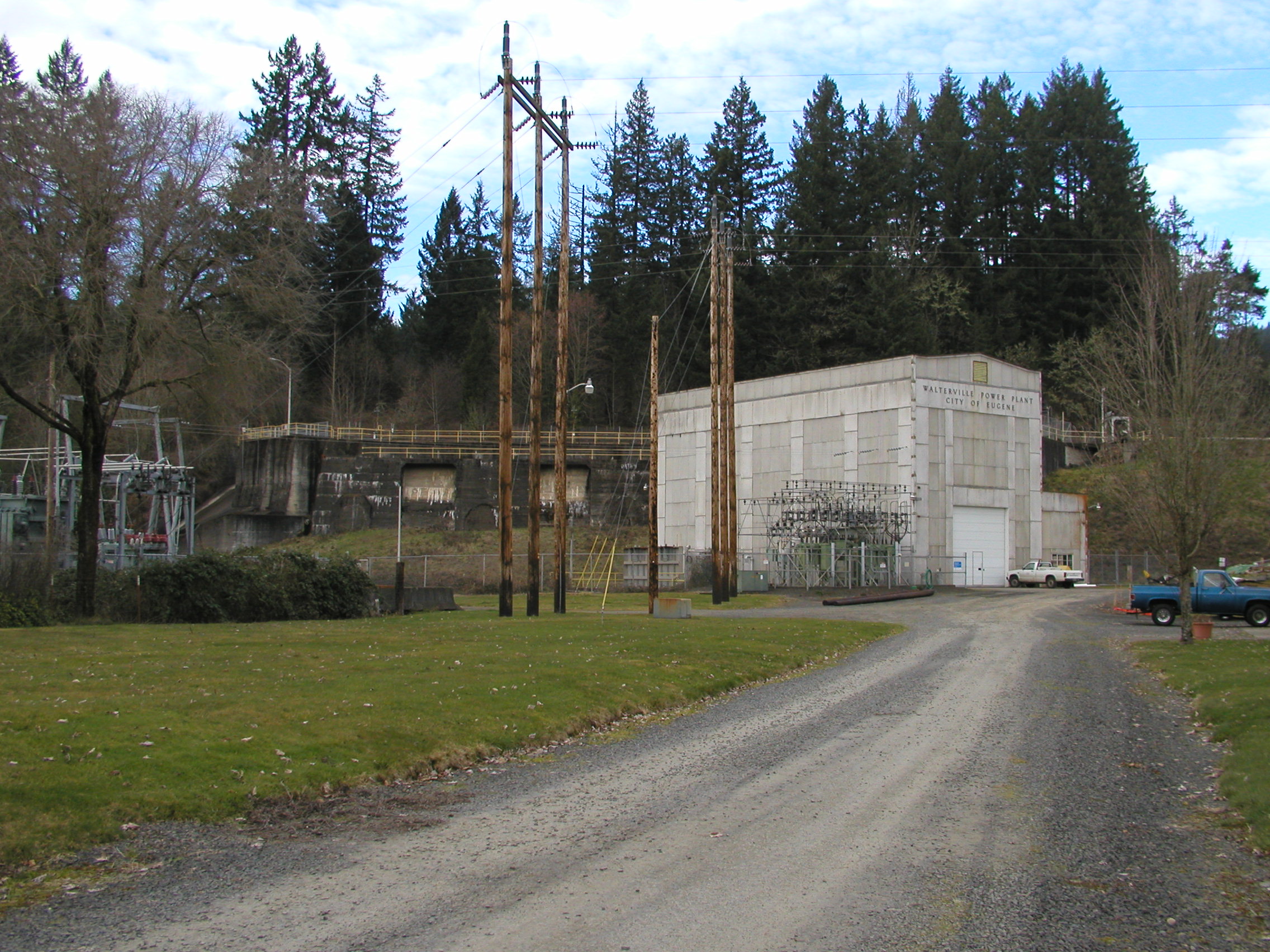 In 1910, Eugene voters approved a bond measure to fund the construction of a powerhouse at Walterville to generate power for the pumps of the city's new municipal water utility. The powerhouse was built at the end of the four-mile-long Walterville Canal, which carries diverted water from the main stem of the McKenzie River to the powerhouse on Camp Creek Road, northwest of Walterville.