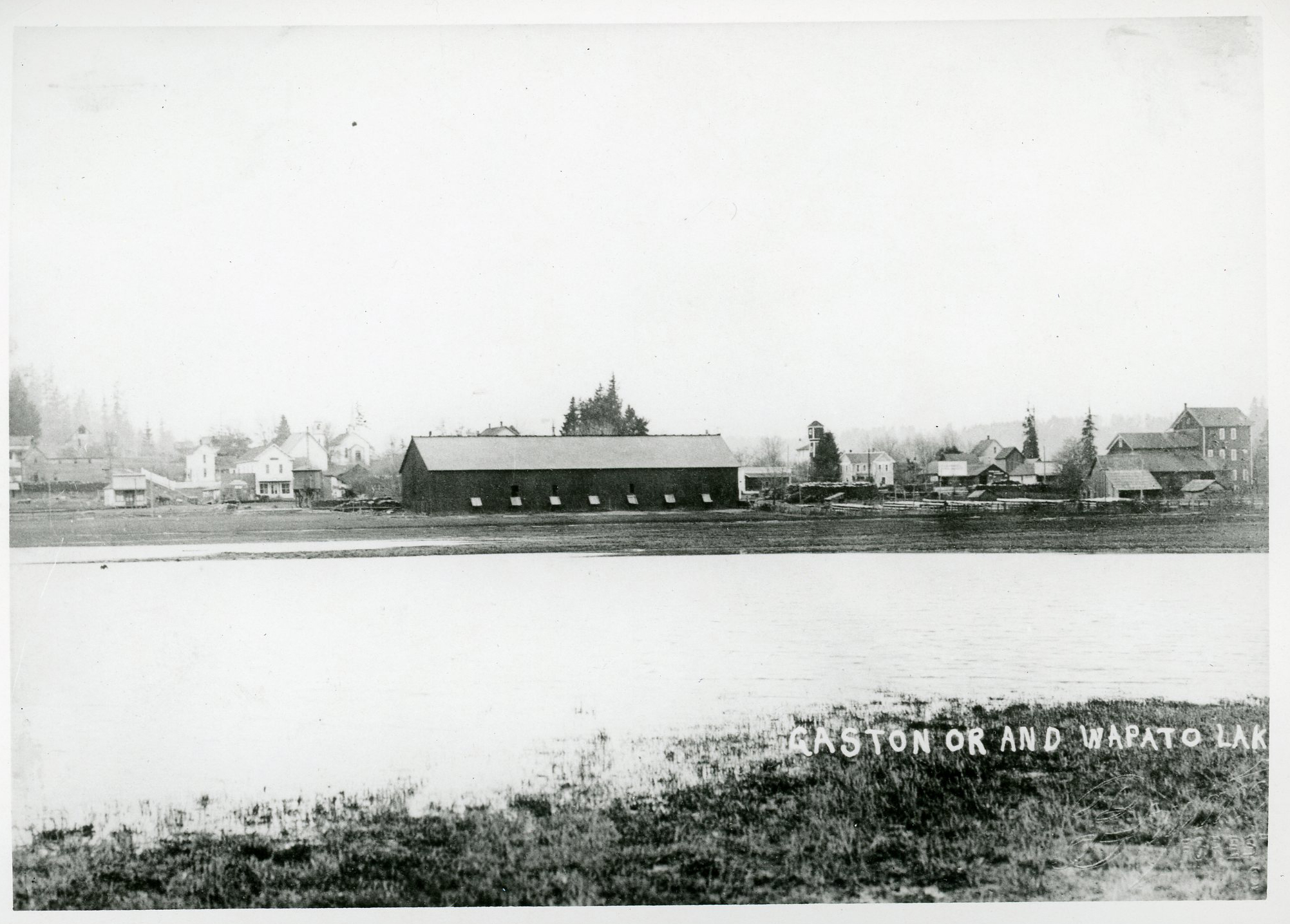 The bed of Wapato Lake is composed of Labish soils and provides some of the most nutrient-rich soils in the Willamette Valley. It was a prime growing area for wapato, a nutritious bulb that thrives in wetlands. In the fall, the Tualatin harvested great quantities of wapato, also called Indian potato, and traded it with Clackamas people at Willamette Falls for dried salmon. The time for gathering wapato is immortalized in their annual calendar, collected by ethnologist Albert Gatschet in 1877 at the Grand Ronde Reservation, as “2nd month: atcha’lankuaik; commencing to get the sagittaria-root from the lake (Ma’mptu); Gaston Lake, Or.” The Tualatin also had legends about the lake. One story collected by Gatschet and linguist Melville Jacobs in Kalapuya Texts (1945) was about amu’lukw, a monster living in the lake who had a spotted horn, kept dogs, and frightened children.