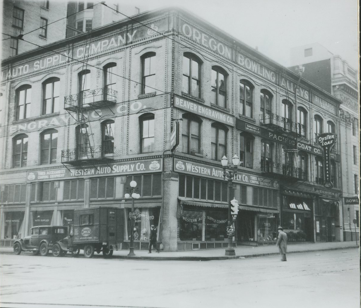 The Wemme Building on the southeast corner of Southwest Broadway and Oak in Portland, 1931.