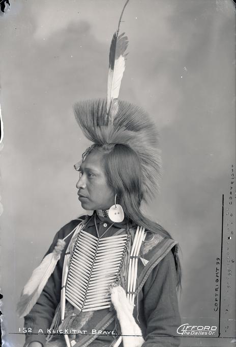 Klickitat identified as Chief Skookum Waiiahee by photographer Lily White, c.1902.