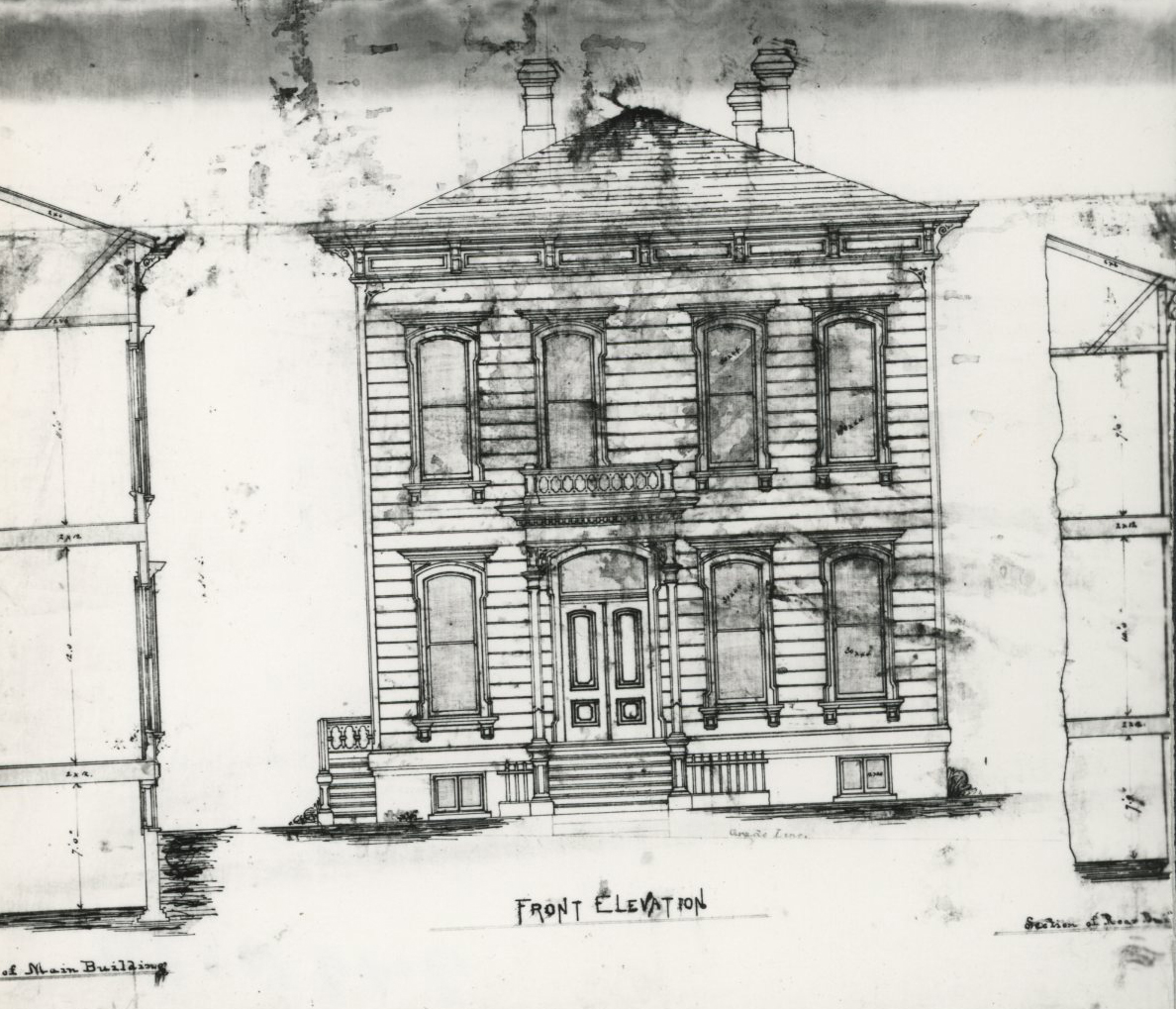 Hand-drawn plans of Dr. Strong's residence on W. Park, Portland, by Willams and Krumbein, 1878.