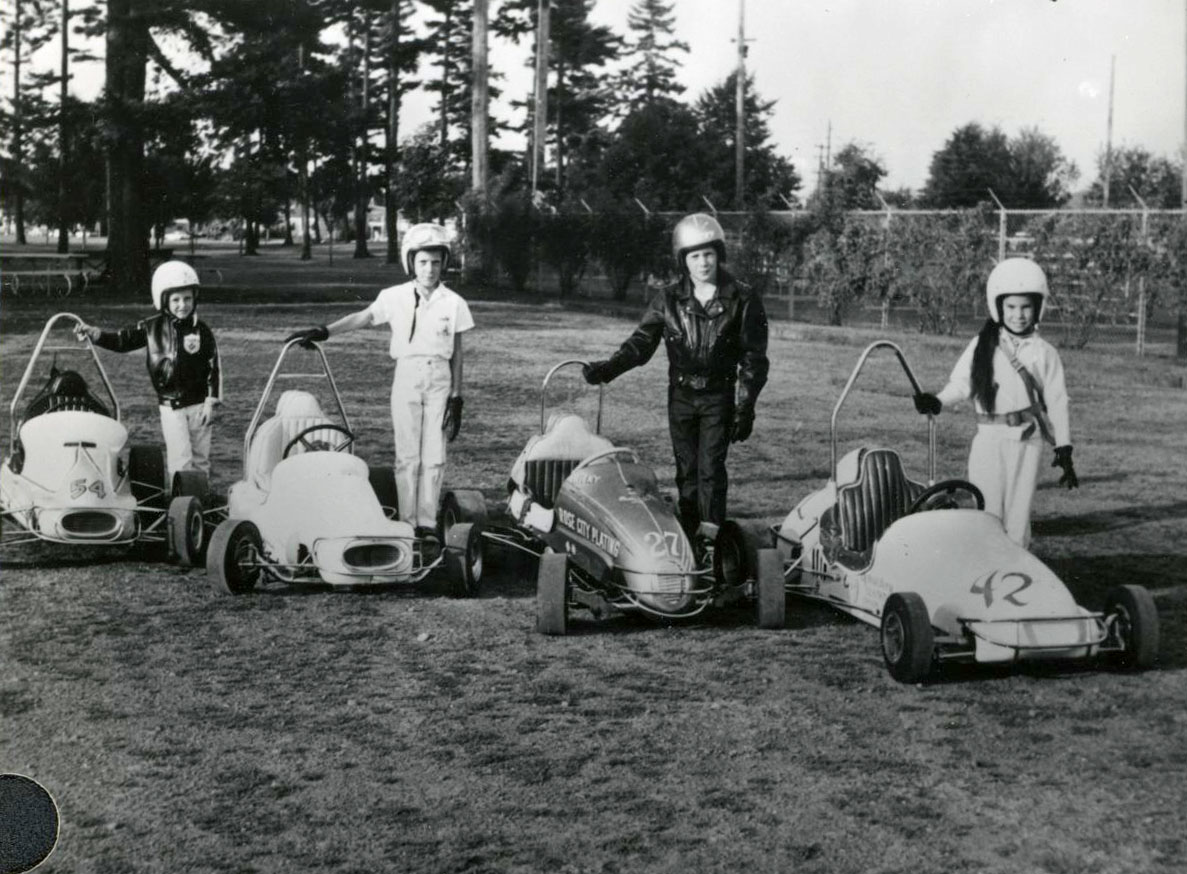 Kids from Portland participate in the 7th regional championship race at Alpenrose tracks, 1965.