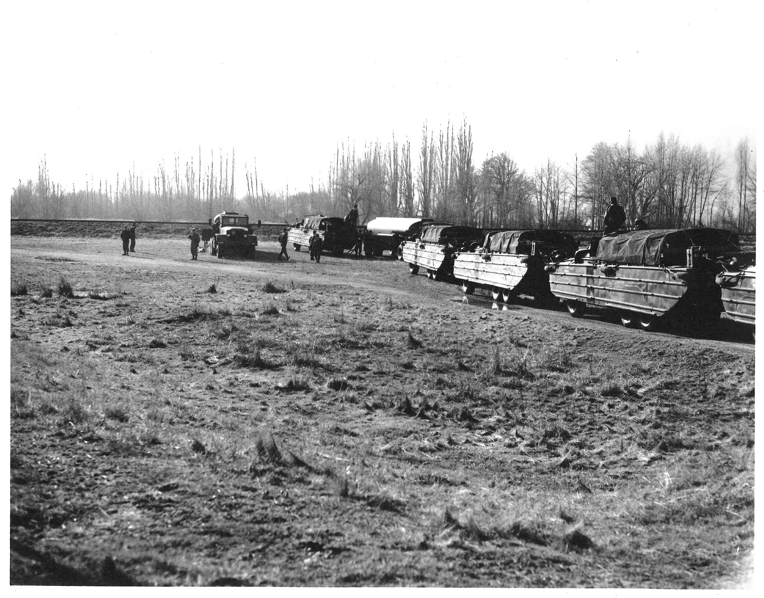 Amphibious vehicles lined up at the Beaver Army Terminal, 1962.