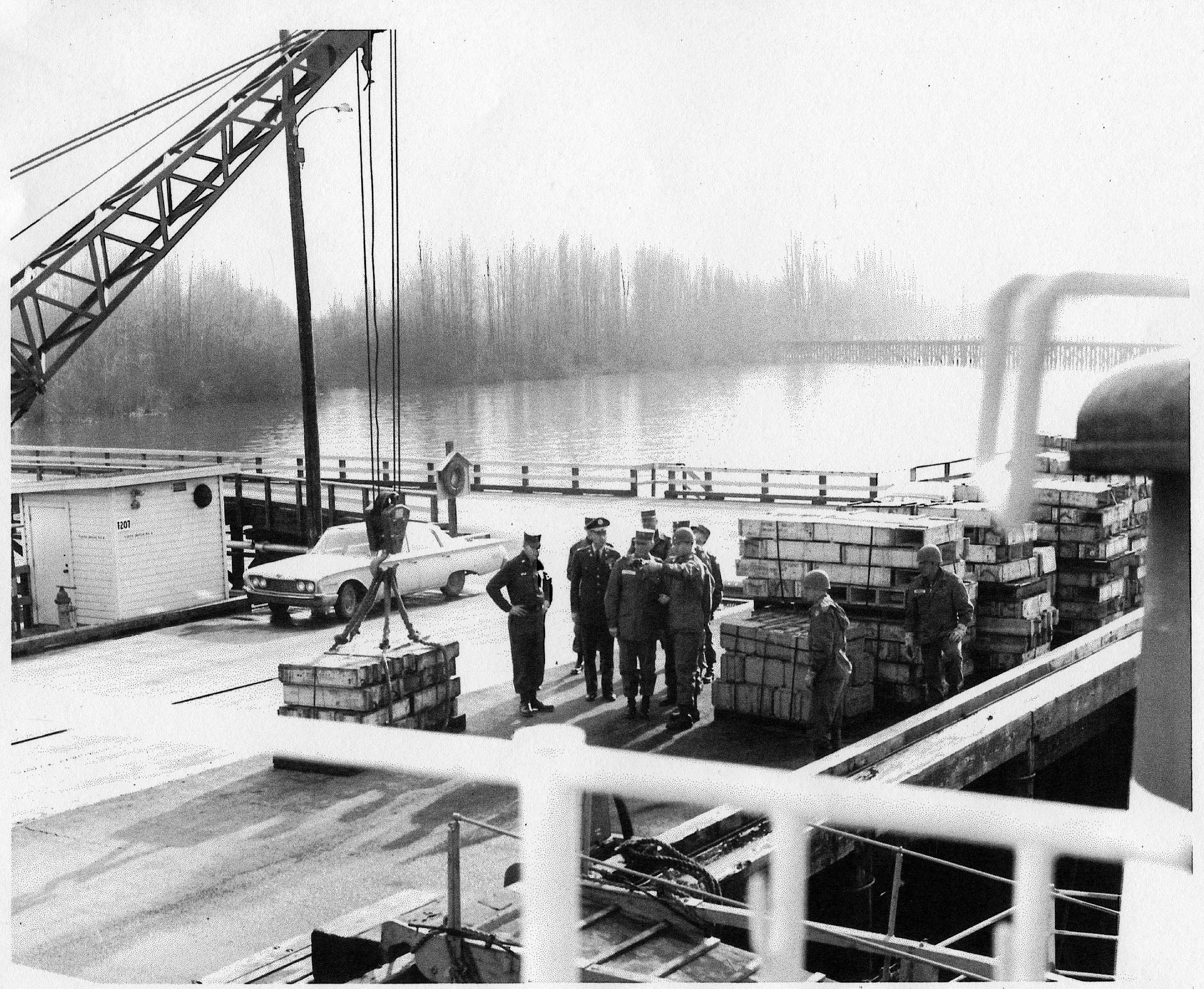 Loading cargo at the west end of the Beaver Army Terminal Dock, 1962.