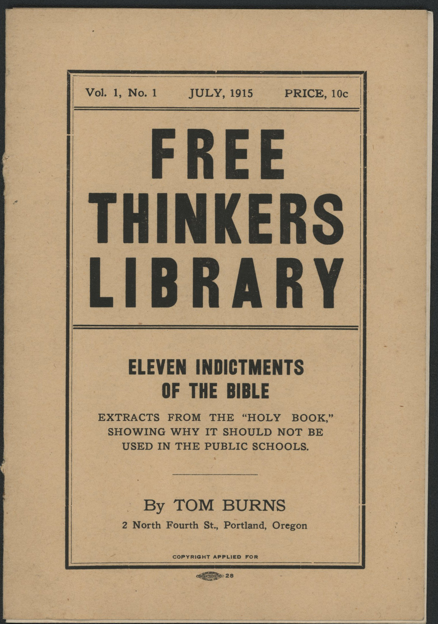As a middle-class radical, Burns held a vital and somewhat protected place in Progressive Era Portland. His status as a small businessman allowed him to cross between the poverty of Portland’s North End into the business world of downtown, and his street corner lectures in the city ranged from praising the humanist teaching of Robert G. Ingersoll to pounding rants against Christianity. Eventually, Burns’ methods earned him the sobriquet “The Most Arrested Man in Portland.” Charges against him varied from "refusing to move on," while street speaking in his first arrest in 1905, to "disorderly conduct in the cannery strike." On many occasions, his pro bono lawyer was soldier, statesman, and bon vivant C.E.S. Wood.