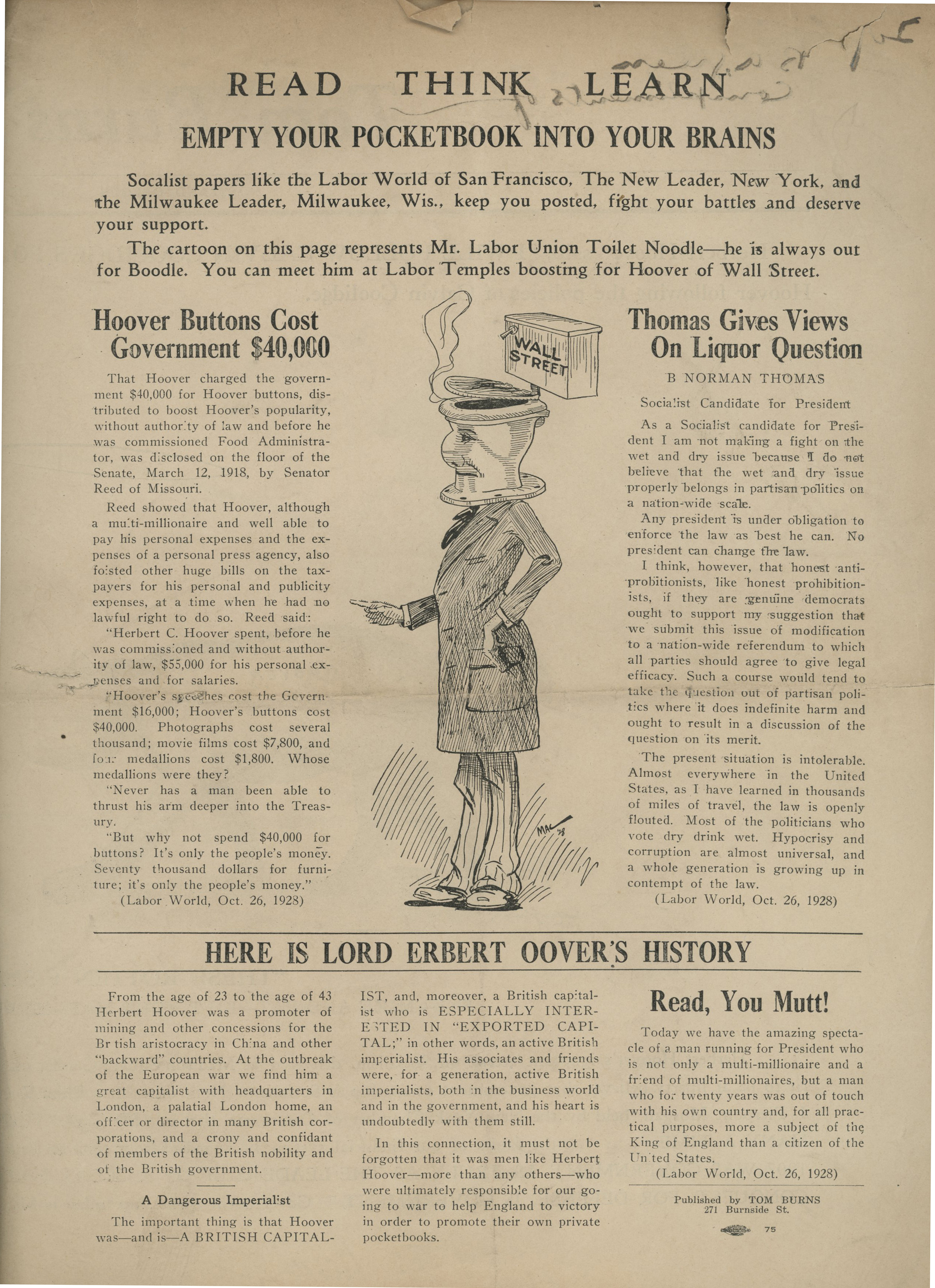 He was born Thomas Joseph Burns on July 28, 1876, in Liverpool, England, and grew up in Dickensian slums. His father, the son of a chemical plant worker, was an Irish-Catholic who had moved to England for work. In the stark poverty of Liverpool, Tom Burns learned empathy for the poor and enmity toward the rich. Although his father envisioned his son a teacher, Burns turned to watchmaking, a career that allowed him to bounce from Liverpool to London to Australia. By 1905, he was in Portland, where he became a founding member of the local branch of the Industrial Workers of the World (IWW, or Wobblies) and secretary of the Oregon Socialist Party.