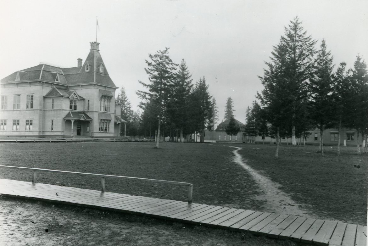 When the first eighteen “scholars” arrived in Forest Grove from the Puyallup Reservation in Washington, conflicts between whites and Indians were still fresh memories for Forest Grove residents. The students and their visiting families were not welcome, and the local community did not support expansion of the school. As a result, Henry J. Minthorn, the school’s second superintendent, acquired 177.32 acres north of Salem. By the time the school and its students moved in 1885, more than 300 children representing over forty tribes in Alaska, Washington, Idaho, and California had been enrolled at the school at Forest Grove.