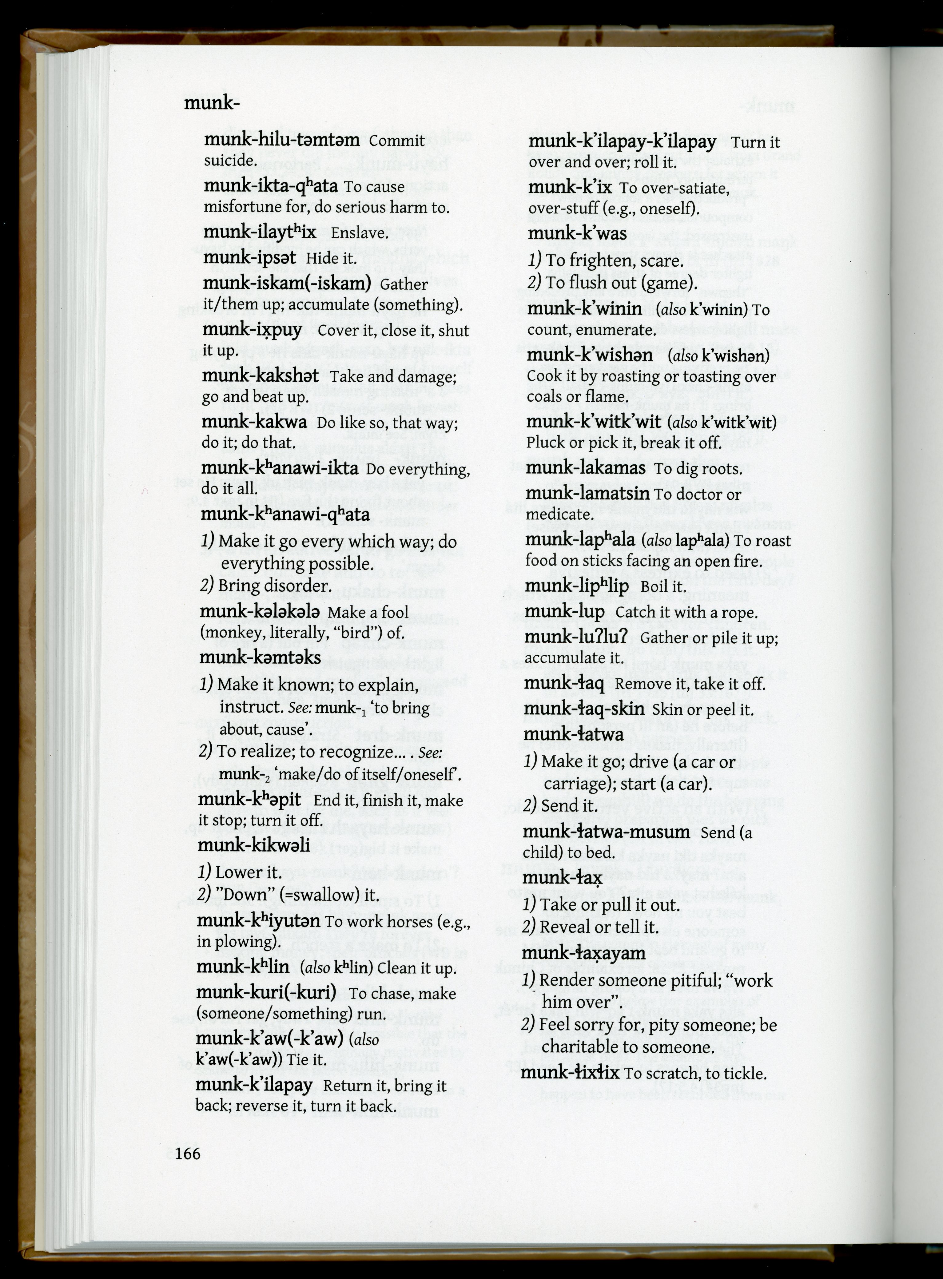 Chinuk Wawa Dictionary Committee. Chinuk Wawa as Our Elders Teach Us to Speak It. Grand Ronde, Oregon: Confederated Tribes of Grand Ronde. Distributed by University of Washington Press, Seattle, 2012.