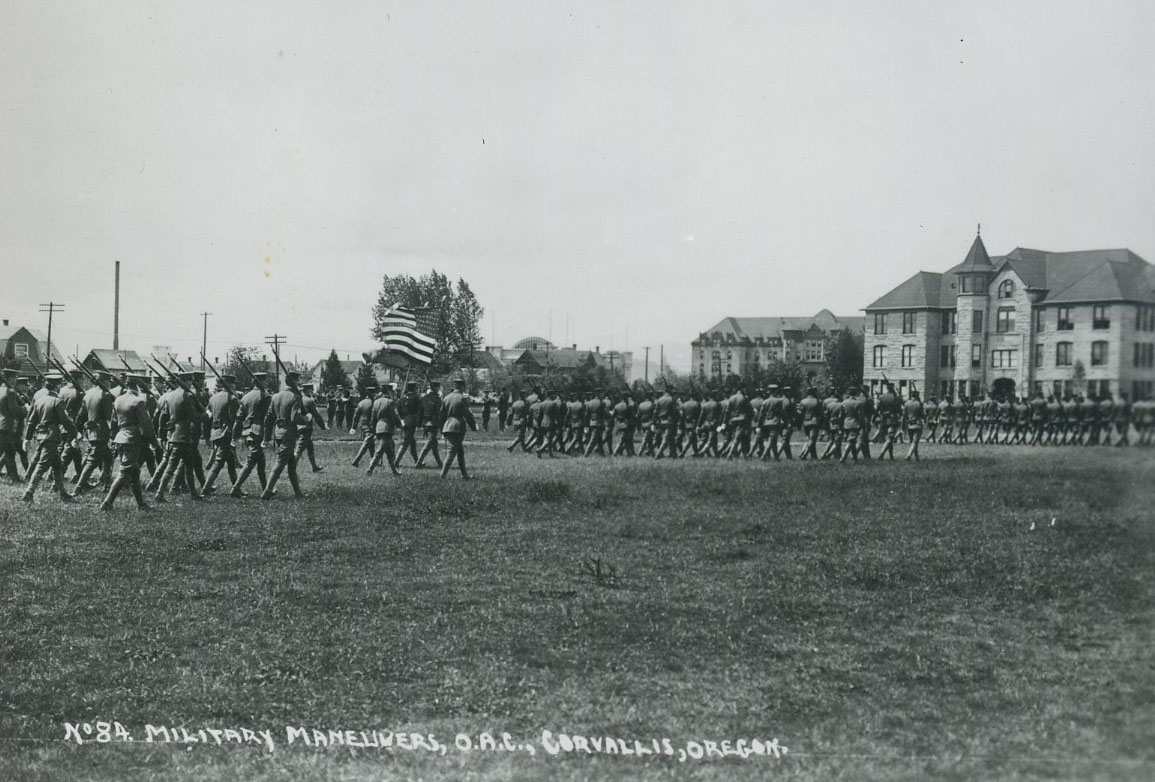 Although Corvallis and the college had been abuzz with defense activity before the winter of 1941, the Japanese attack on Pearl Harbor on December 7 triggered unprecedented research and the specialized training of troops on campus. The army’s construction of the Camp Adair training base north of Corvallis was a boon to city businesses, and the shortage of housing during the war continued after 1945 when hundreds of veterans arrived to attend college on the GI Bill.