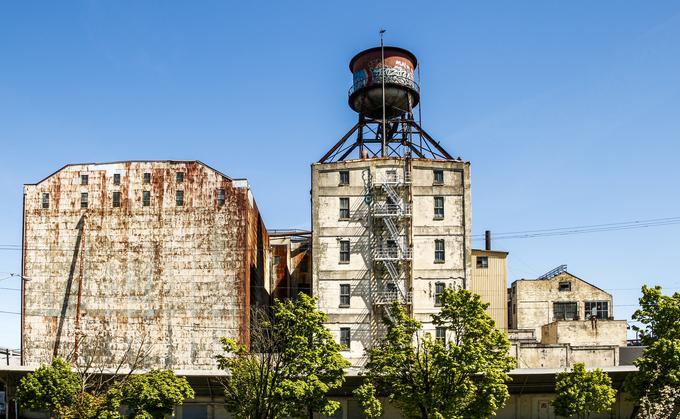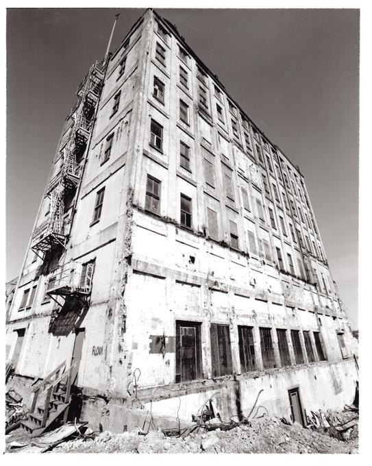 The Portland Development Commission purchased the Centennial Mills property in 2000, and Warehouse E was remodeled and repurposed for the Portland Mounted Police. After a lengthy public process, most of the remaining buildings, in very poor condition and beyond repair, were razed in 2015-2016. The six-story concrete flour mill remains, awaiting rehabilitation as part of a planned redevelopment.