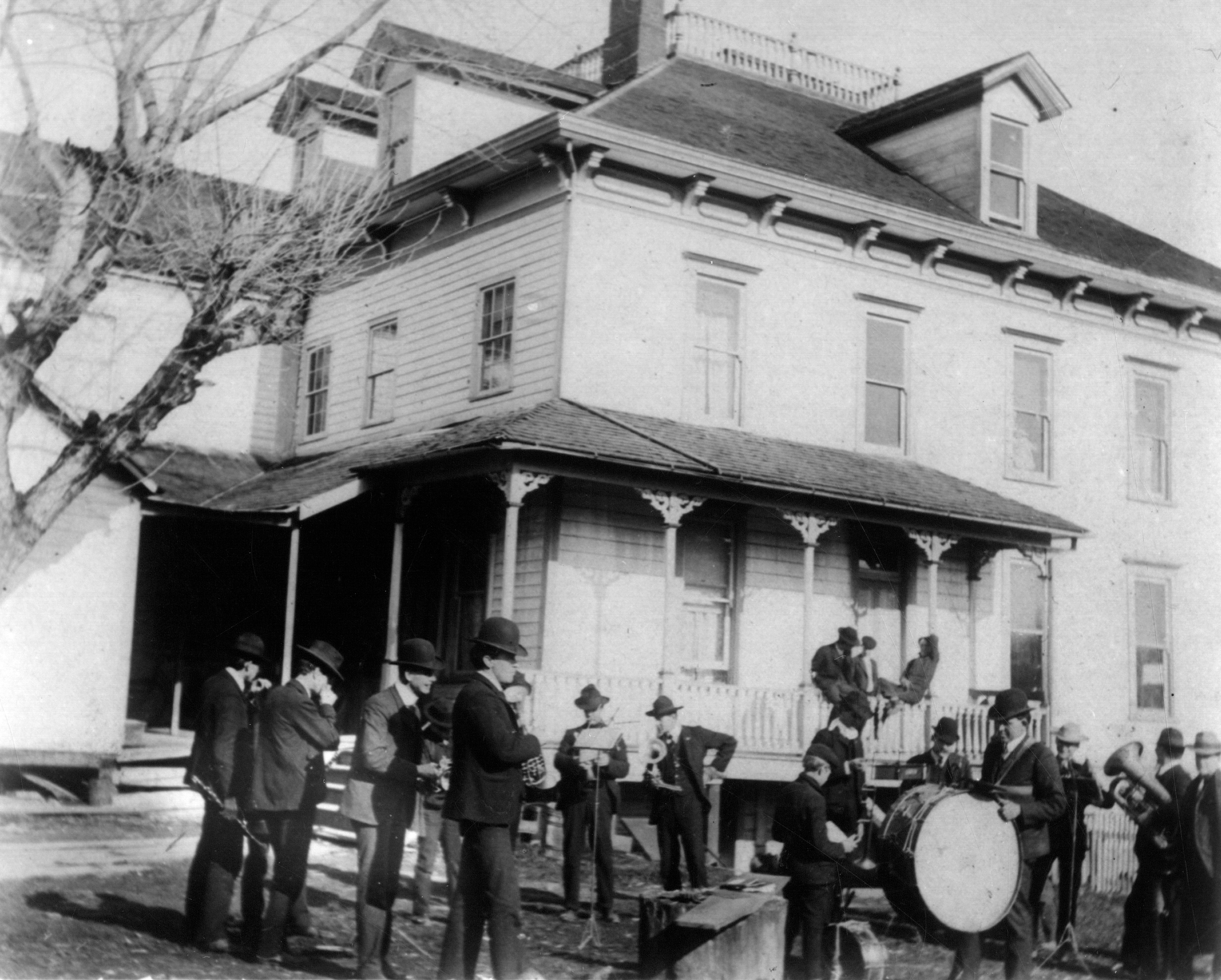 Henry C. Keil and a group of the colonists went west in 1855, finally settling at Aurora in 1856. Beatrice Finck died in Bethel in 1858, leaving her husband with five young children and prompting the family’s relocation to Aurora in 1863. Henry C. purchased a house with an established apple orchard on the edge of Aurora and again pursued his trade as a druggist and merchant. He also gave music lessons and formed the Aurora Band, which quickly rose to regional fame.
