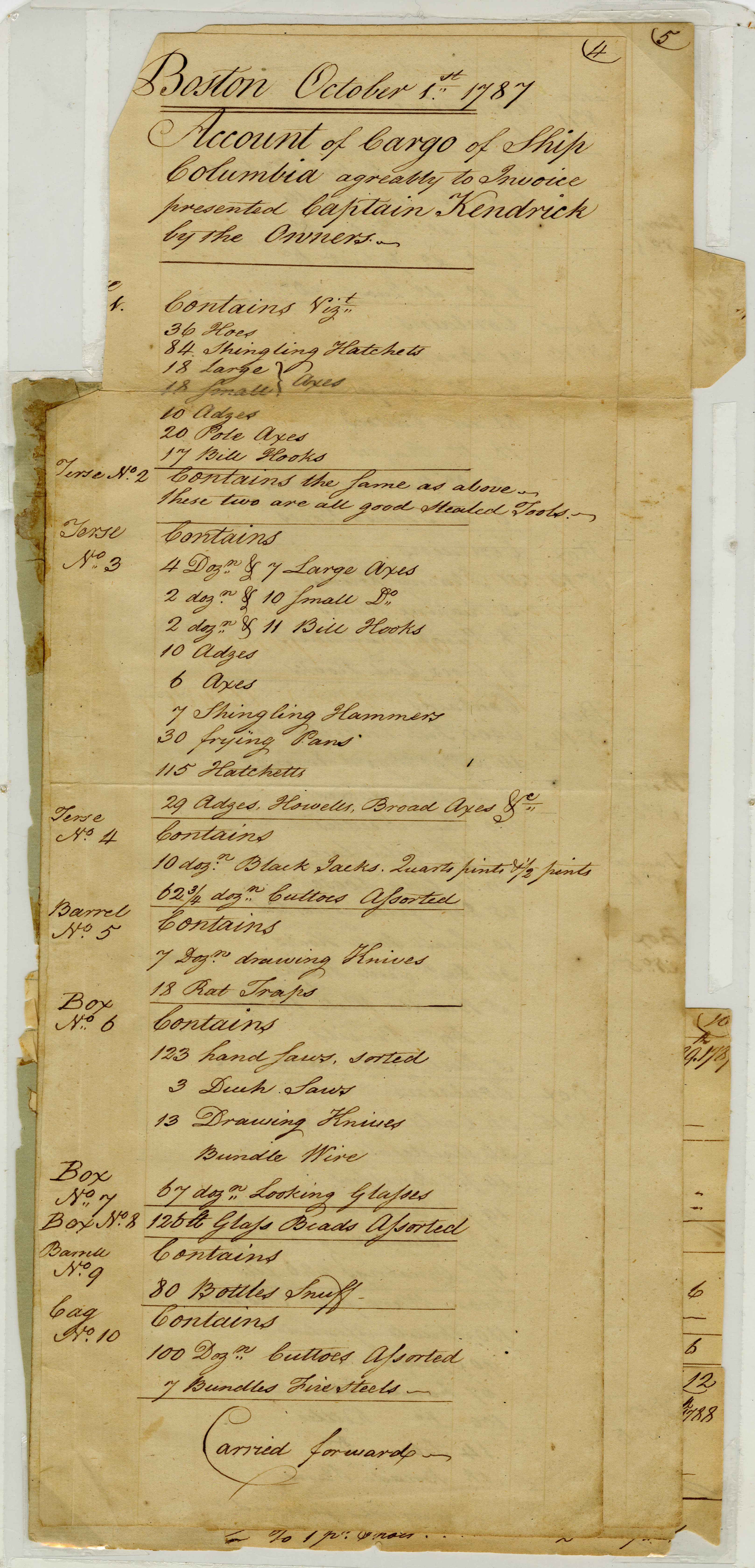 The Columbia's account of cargo, 1787.