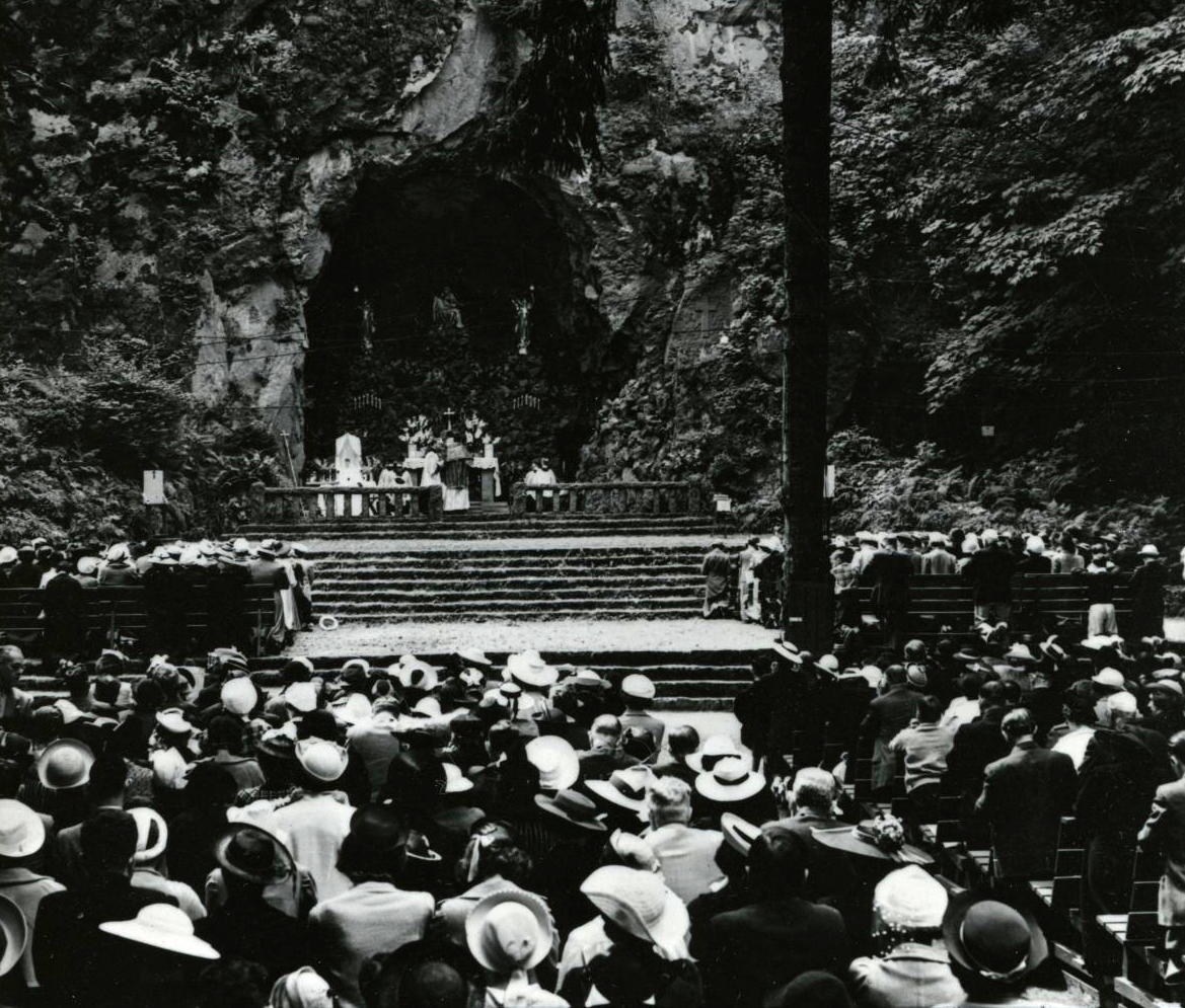 The Grotto was developed on land purchased in 1923 from the Union Pacific Railroad by a Servite priest, Father Ambrose Mayer, for $48,000. For Mayer, establishing the Sanctuary was a way to repay God for answering his boyhood prayers to keep alive his mother, who had fallen gravely ill in 1892 after the birth of a daughter. Pope Pius XI blessed the project in a letter, and the first mass, led by Alexander Christie, archbishop of Portland, was held on May 29, 1924. The Servites continue to maintain and operate the nonprofit Sanctuary.