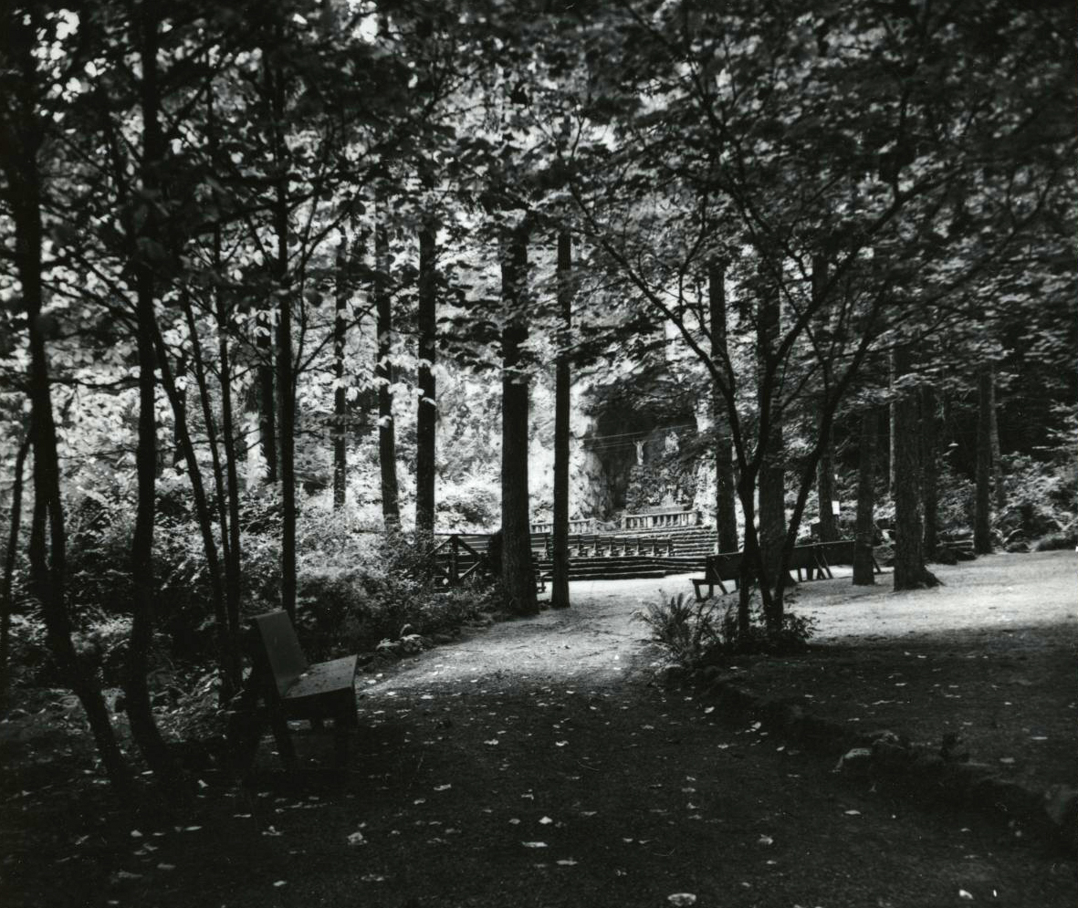 The two levels of the grounds are divided by the northern face of Rocky Butte, a 110-foot basalt cliff. The lower level, open year-round to the public, features the centerpiece of The Grotto, a large cavern shrine carved into the base of the cliff wall in 1923. At its center is a replica of Michelangelo’s Pieta. Masses are held from May through September at an outdoor plaza. The Chapel of Mary, built in 1955, is used for indoor masses, concerts, and weddings.