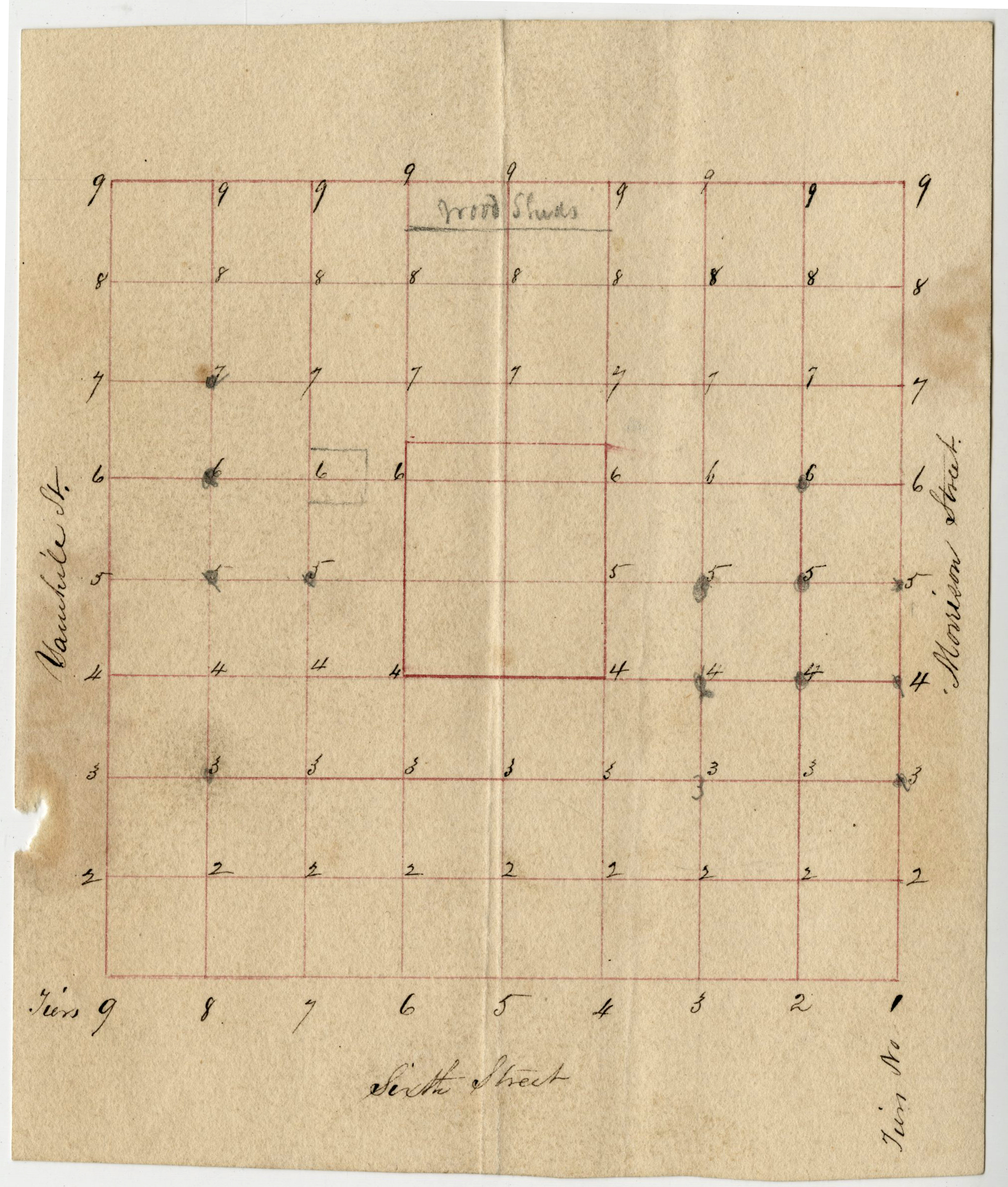 As the decade progressed Hallock reduced his building commissions in favor of work as a surveyor and as chief engineer of Multnomah Fire Engine Company Number 2. In 1863, he was appointed Portland’s first city surveyor. He established and laid out the grades for Portland’s downtown streets and surveyed and mapped much of the city and also surveyed the town site of Astoria. Hallock may have been assisted in this work by his son Edward (1857-1906), a civil engineer who shared his office in the later 1870s and later became Astoria’s chief of police.