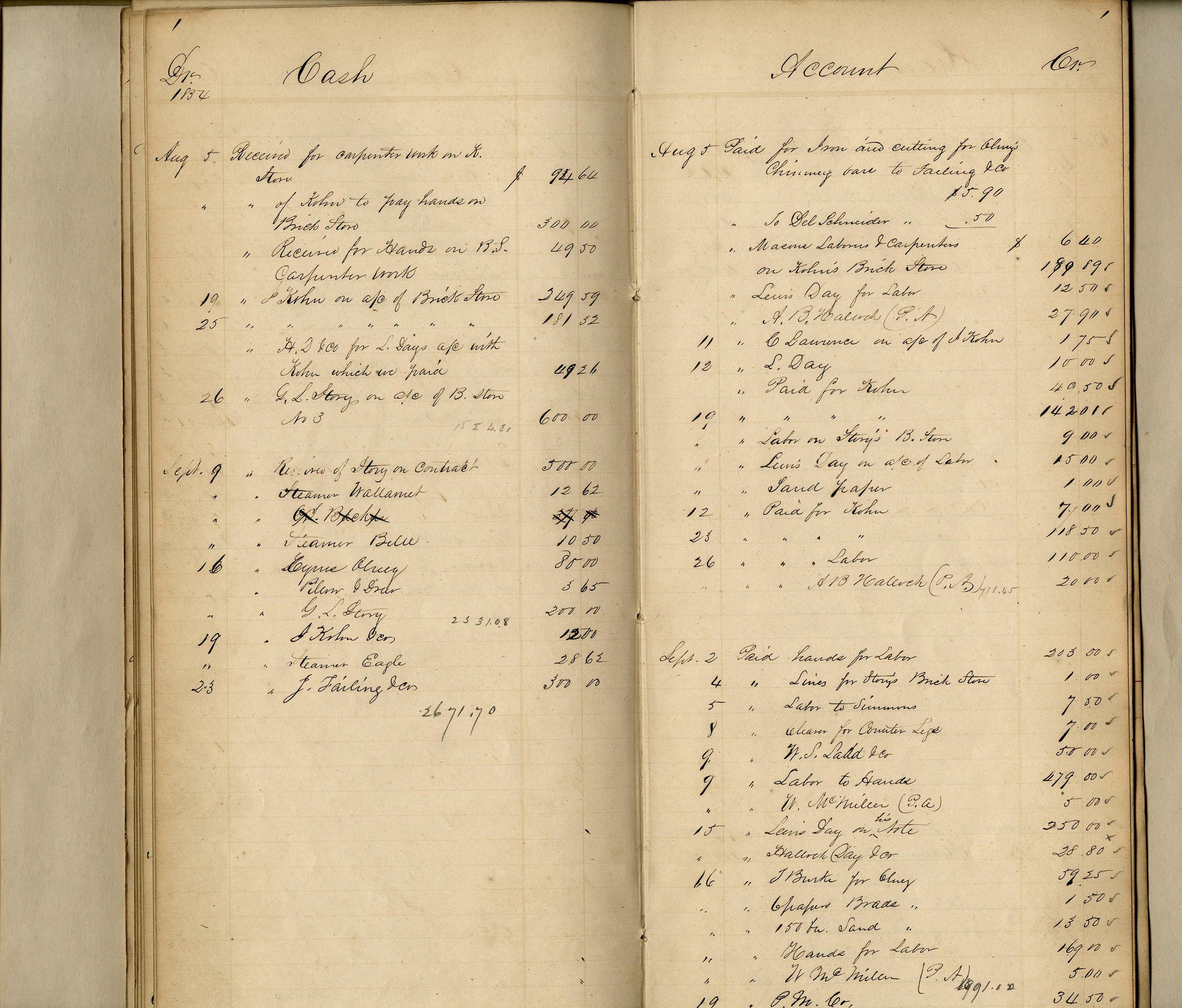Born and raised in Utica, New York, Hallock was the son of Amelia Barrett and Robert Titus Hallock (1806-1879), a homeopathic physician and leading member of the American spiritualist movement. A.B. Hallock left New York and settled in Oregon in 1850. Two years later he was awarded his first significant architectural commission—to design the Washington County Courthouse in Hillsboro. He and contractor William McMillan established the firm of Hallock & Company in 1852. The firm attracted prominent Portland patrons, including William Ladd, who hired Hallock and McMillan in 1853 to design and construct the city’s first brick building, located on Front St., between Stark and Washington (demolished in 1940). The partners also designed and built early homes for Oregon Supreme Court Justice Cyrus Olney and shipping tycoon George Flanders.