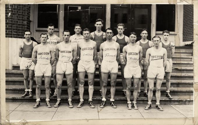The 1925-1926 U of O basketball squad. Hobby is in the front row, second from the right..